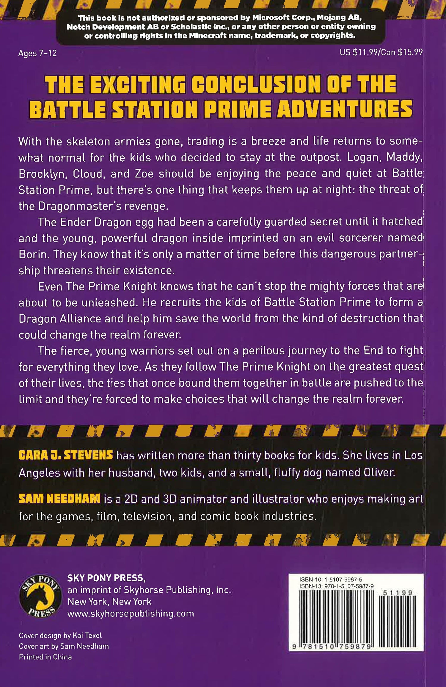 Age range 7 to 12With the skeleton armies gone, trading is a breeze and life returns to somewhat normal for the kids who decided to stay at the outpost. Logan, Maddy, Brooklyn, Cloud, and Zoe should be enjoying the peace and quiet at Battle Station Prime, but there s one thing that keeps them up at night: The threat of the Dragonmaster's revenge.The Ender Dragon egg had been a carefully guarded secret until it hatched and the young, powerful, dragon inside imprinted on an evil sorcerer named Borin. They know that it s only a matter of time before this dangerous partnership threatens their existence.Even The Prime Knight knows that he can t stop the mighty forces that are about to be unleashed. He recruits the kids of Battle Station Prime to form a Dragon Alliance and help him save the world from the kind of destruction that could change the realm forever.The fierce, young warriors set out on a perilous journey to The End to fight for everything they love. As they follow The Prime Knight into the greatest quest of their lives, the ties that once bound them together in battle will be pushed to the limit and they'll be forced to make choices they never expected to make.