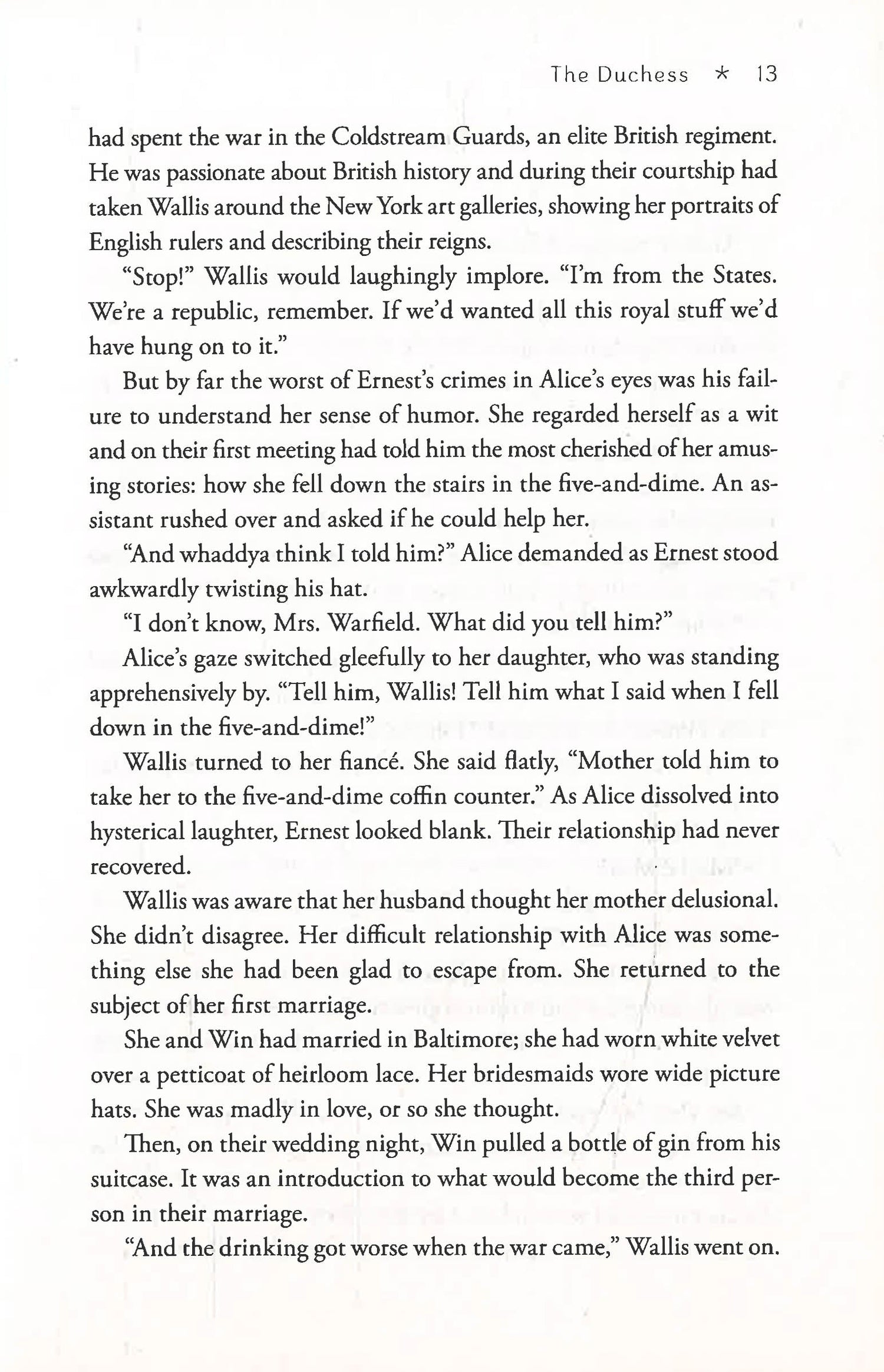 Wallis knows the fun and excitement can’t last. The prince will have to marry and she will return to Ernest. The sudden death of George V seems to make this inevitable; the Prince of Wales is now King Edward VIII. When, to her shock and amazement, he refuses to give her up--or recognize that they are facing impossible odds--her fairy tale becomes a nightmare. The royal family close ranks to shut her out and Ernest gives an ultimatum.