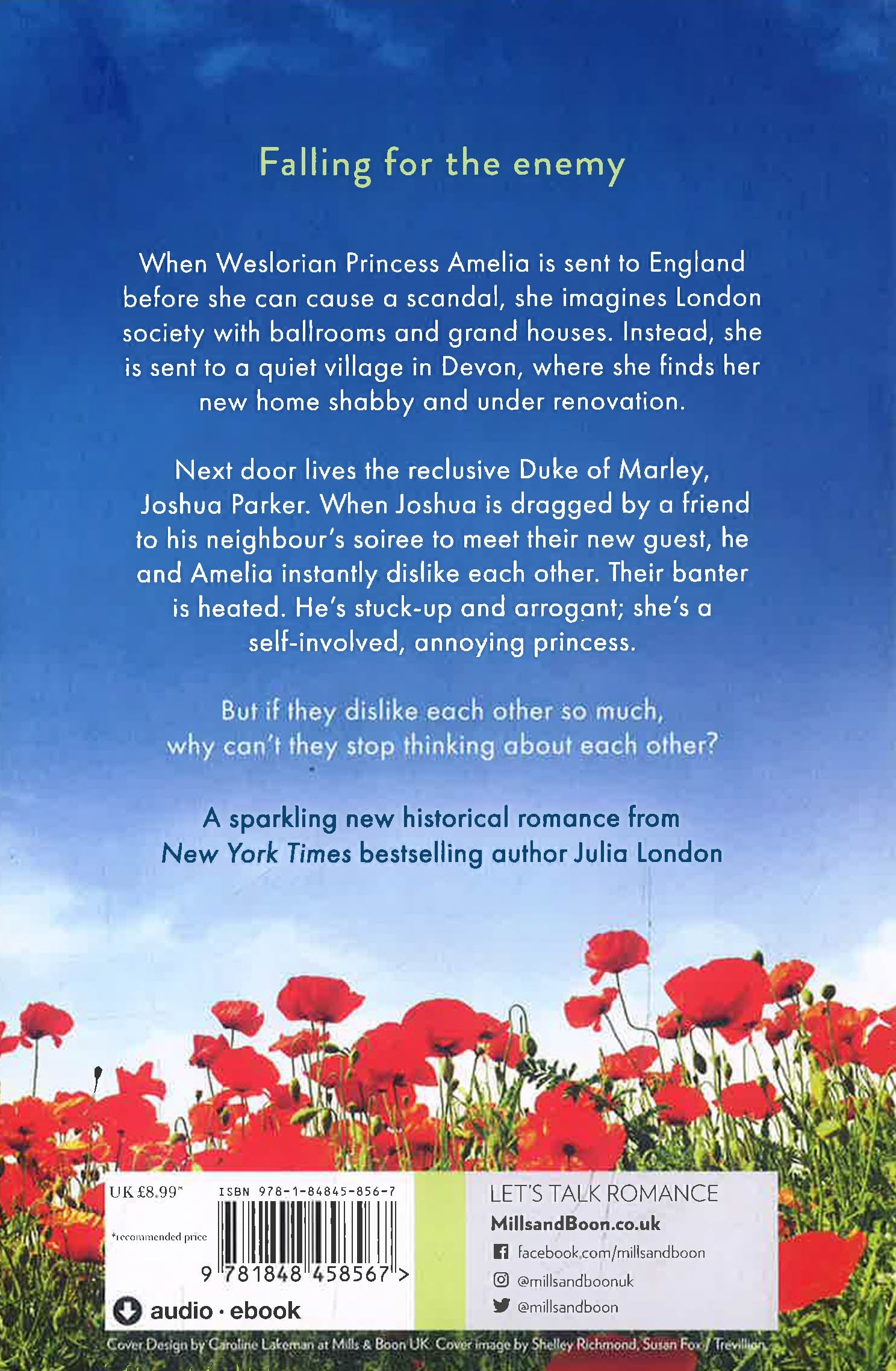 When Weslorian Princess Amelia is sent to England before she can cause a scandal, she imagines London society with ballrooms and grand houses. Instead, she is sent to a quiet village in Devon, where she finds her new home shabby and under renovation.