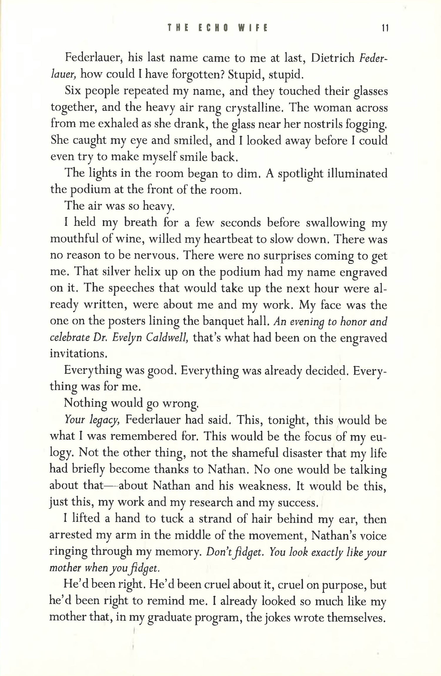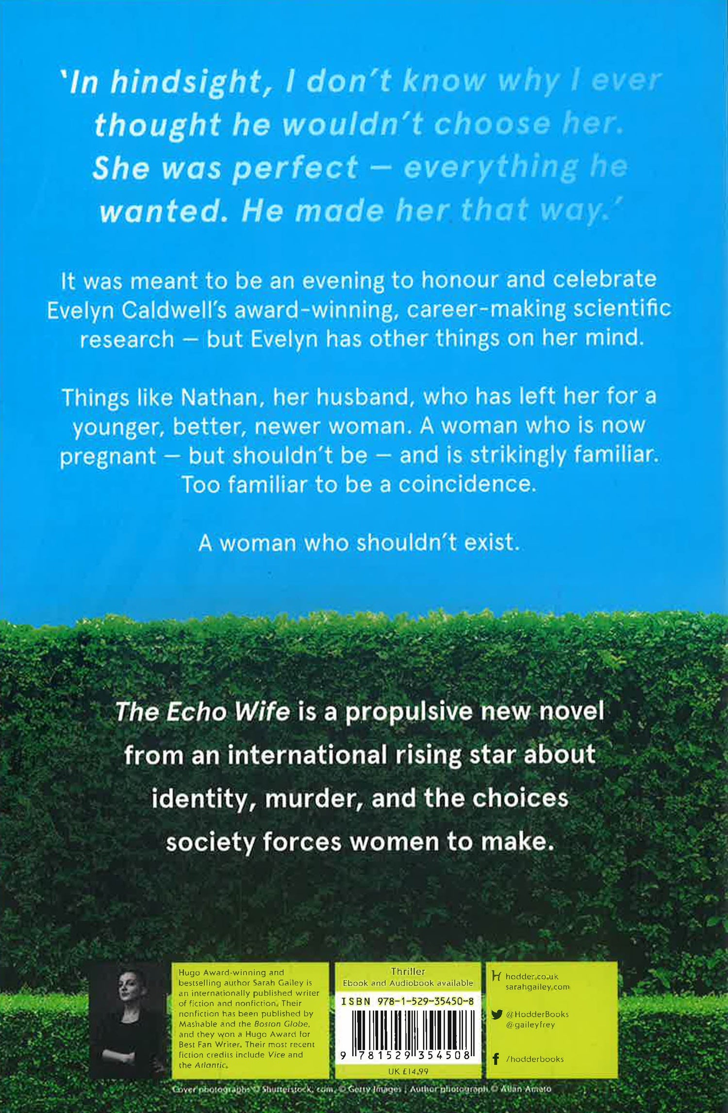 A dark and suspenseful novel of lies, betrayal, and identity - perfect for fans of Big Little Lies and Charlie Brooker's Black Mirror. It was meant to be an evening to honour and celebrate Evelyn Caldwell's award-winning, career-making scientific research - but Evelyn has things on her mind. Things like Nathan, her husband, who has left her for a younger, better, newer woman. A woman who is now pregnant - but shouldn't be - and is strikingly familiar. Too familiar to be a coincidence. A woman who shouldn't exist. The Echo Wife is a propulsive new novel from an international rising star about identity, murder, and the choices society forces women to make.