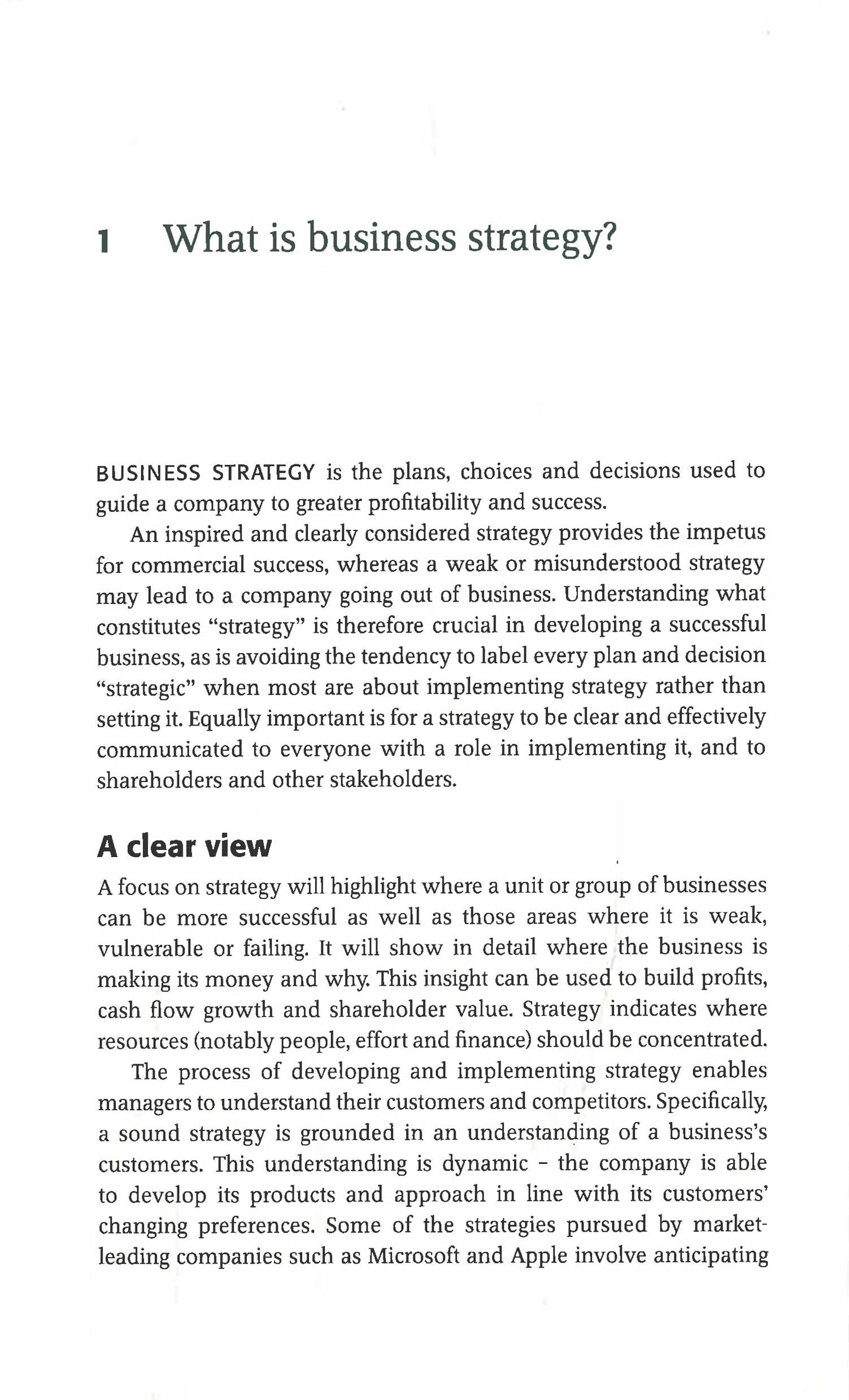 The effectiveness of a good strategy well implemented determines a business' future success or failure. Yet history is full of strategic decisions, big and small, that were ill-conceived, poorly organised and consequently disastrous. This updated guide looks at the whole process of strategic decision-making - from vision, forecasting, and resource allocation, through to implementation and innovation. Strategy is about understanding where you are now, where you are heading and how you will get there. There is no room for timidity or confusion. Although the CEO and the board decide a company's overall direction, it is the managers at all levels of the organisation that will determine how the vision can be transformed into action. In short, everyone is involved in strategy.