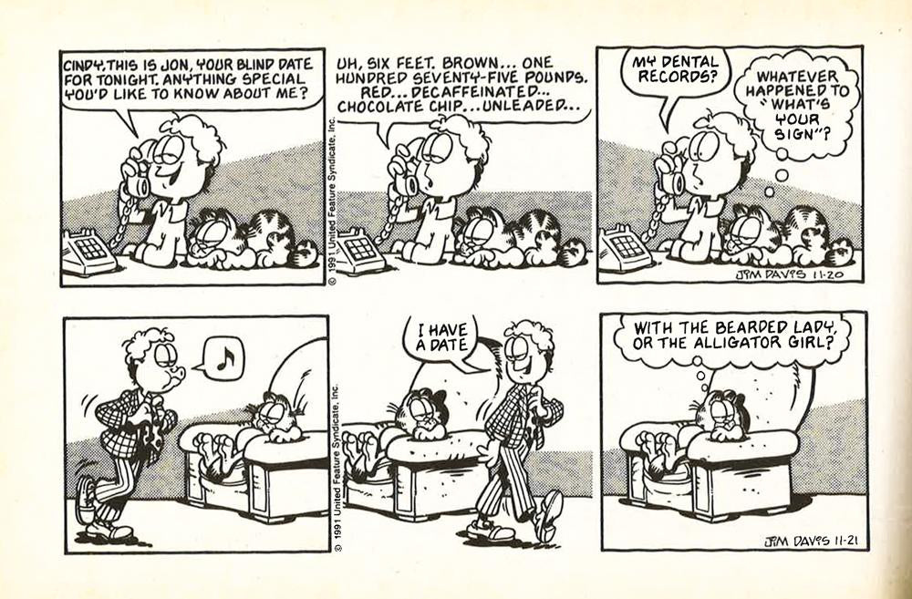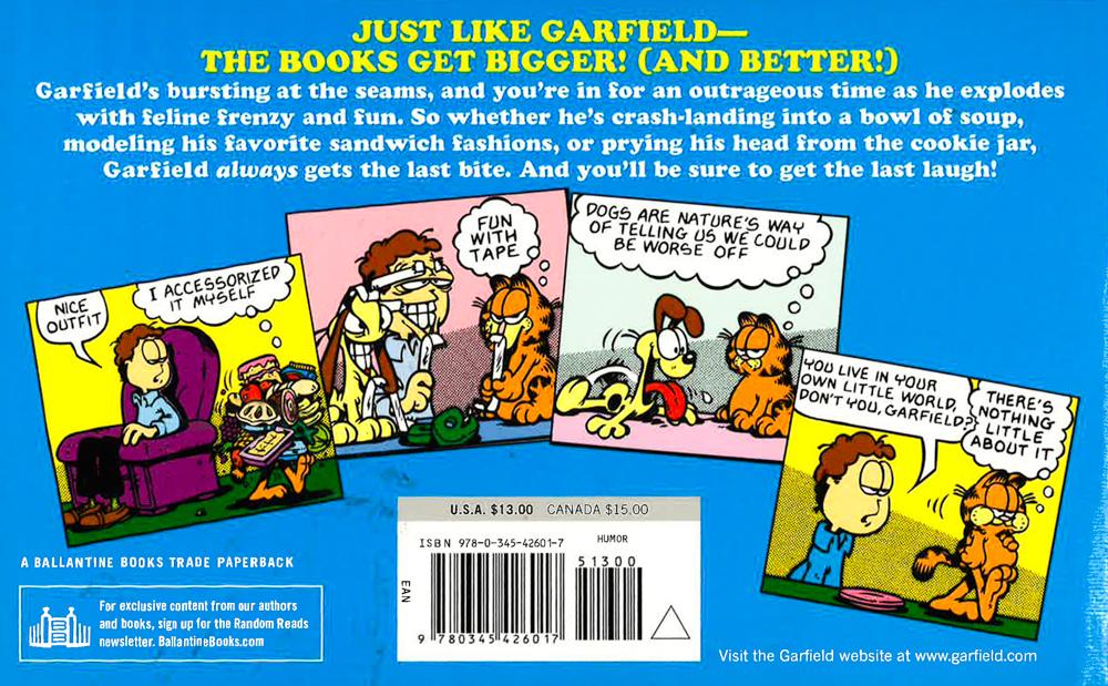 Garfield by the Pound. Garfield Keeps his Chins Up. Garfield Takes his Licks Just like Garfield--The Books get Bigger! (and Better!) Garfield's bursting at the seams, and you're in for an outrageous time as he explodes with feline frenzy and fun. So whether he's crash-landing into a bowl of soup, modeling his favorite sandwich fashions, or prying his head from the cookie jar, Garfield always gets the last bite. And you'll be sure to get the last laugh! *This book may have remainder mark*