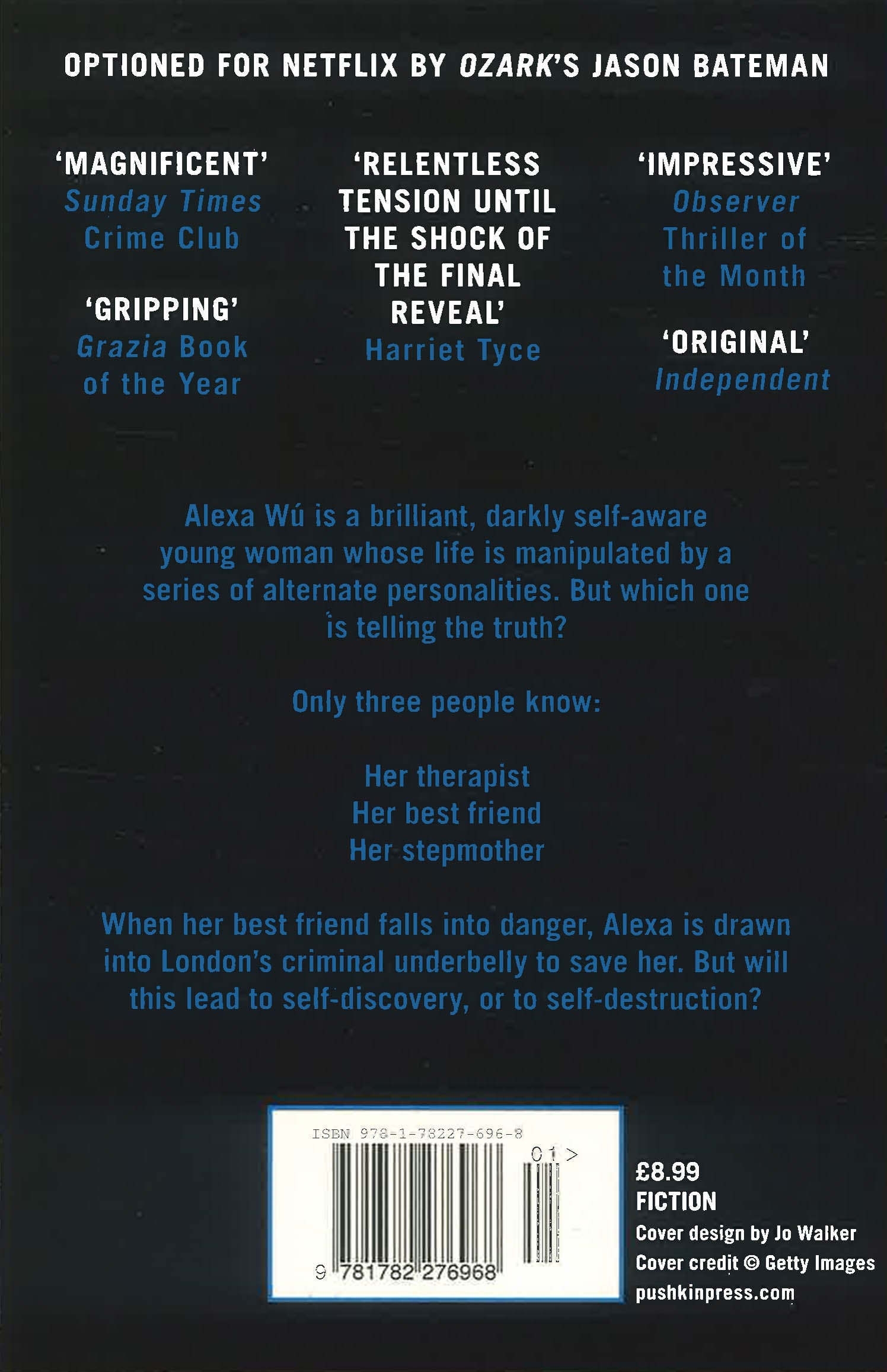 One woman, many personas. But which one is telling the truth? Alexa Wú is a brilliant yet darkly self-aware young woman whose chaotic life is manipulated and controlled by a series of alternate personalities. Only three people know about their existence: her therapist Daniel; her stepmother Anna; and her enigmatic best friend Ella. When Ella gets a job at a high-end gentleman's club, she is gradually drawn into London's cruel underbelly. With lives at stake, Alexa follows her friend on a daring rescue mission. Threatened and vulnerable, she will discover whether her multiple personalities are her greatest asset, or her biggest obstacle.