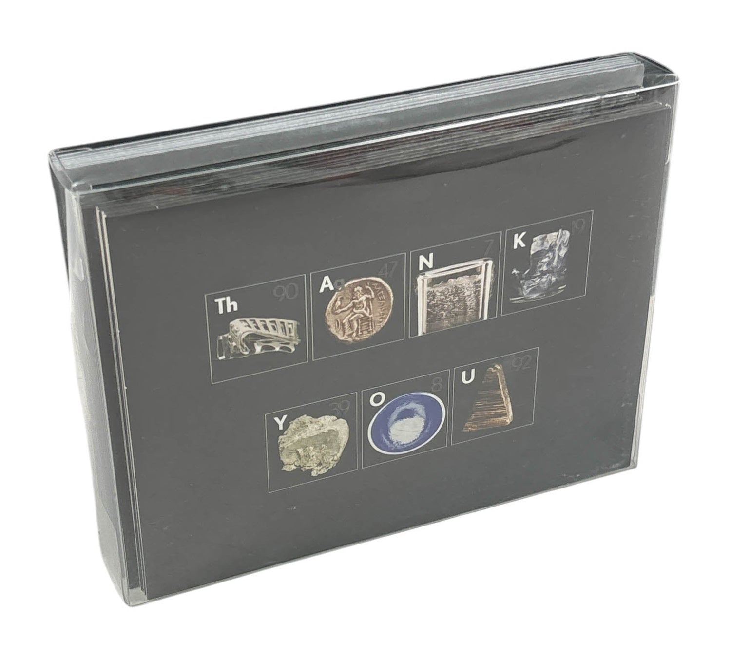 Five cards (2 of each) also include "Miss You", "Thank You" and an full image of Gray's complete photographic periodic table with the message inside, "I think of you, periodically."