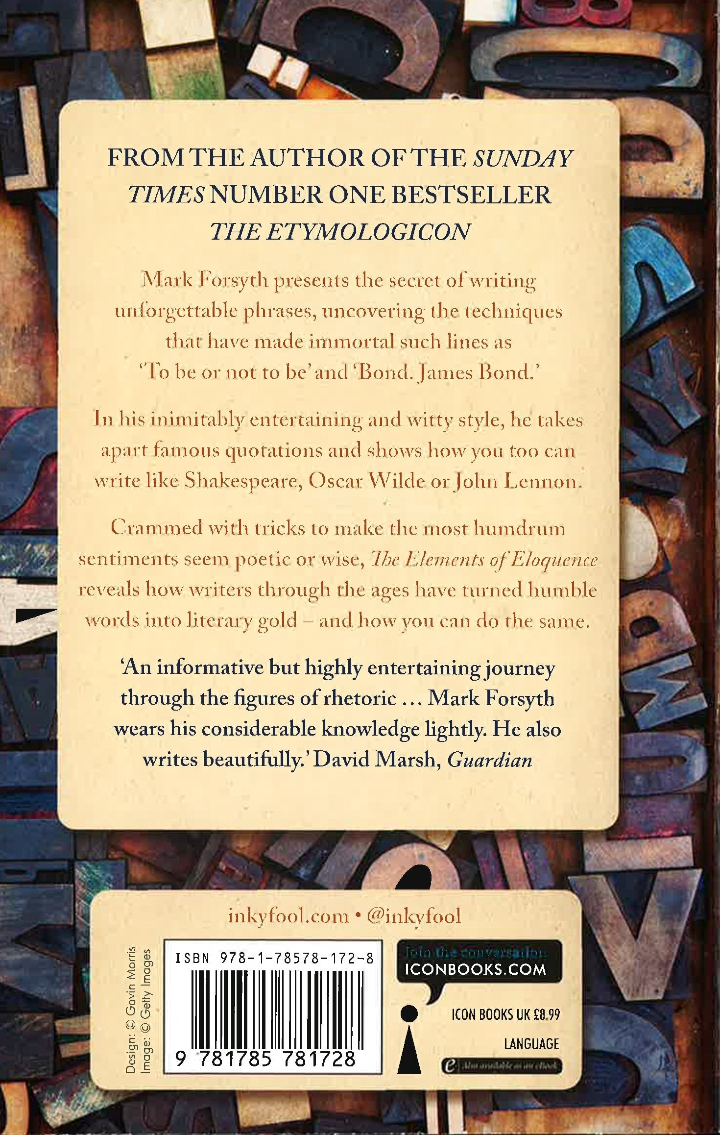 Mark Forsyth presents the secret of writing unforgettable phrases, uncovering the techniques that have made immortal such lines as 'To be or not to be' and 'Bond. James Bond.' In his inimitably entertaining and witty style, he takes apart famous quotations and shows how you too can write like Shakespeare, Oscar Wilde or John Lennon. Crammed with tricks to make the most humdrum sentiments seem poetic or wise, The Elements of Eloquence reveals how writers through the ages have turned humble words into literary gold - and how you can do the same.