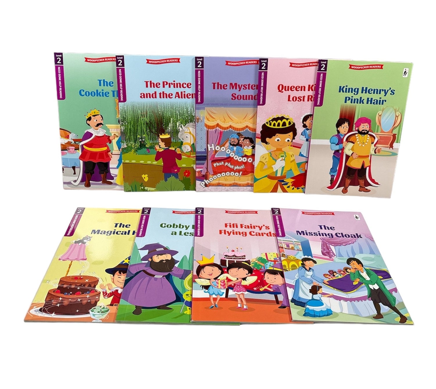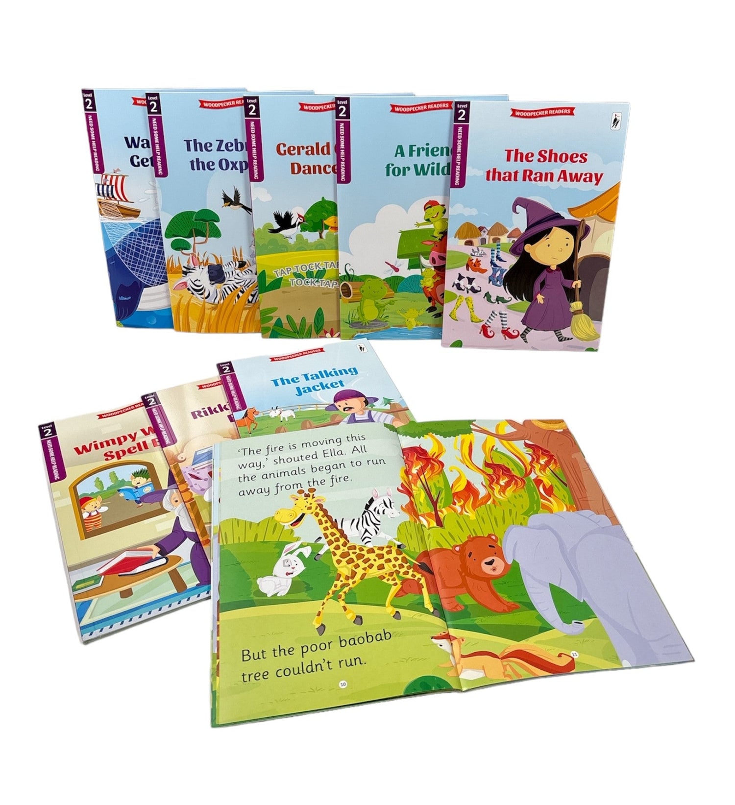 The Emerging Reader set is intended for beginner readers who are able to read a few words but still require assistance from an adult while reading. The stories contain large print and very few words, and are accompanied by illustrations that aid in understanding. This set includes: 1) Woodpecker Readers Level 1: The Emerging Reader Set Of Animal Stories: • Saving The Baobab Tree • Rikki Rabbit's Books • A Friend For Wilder • Gerald Giraffe's Dance Party • The Zebra And The Oxpecker • Wally Whale Gets Caught 2) Woodpecker Readers Level 2: The Emerging Reader Set Of Magic Stories: • Fifi Fairy's Flying Cards • Gobby Learns A Lesson • The Magical Hat • The Shoes That Ran Away • The Talking Jacket • Wimpy Wizards Spell Book 3) Woodpecker Readers Level 2: The Emerging Reader Set Of Mystery Stories: • King Henry's Pink Hair • Queen Kiara"s Lost Ring • The Mysterious Sound • The Prince And The Alien • The Cookie Thief • The Missing Cloak