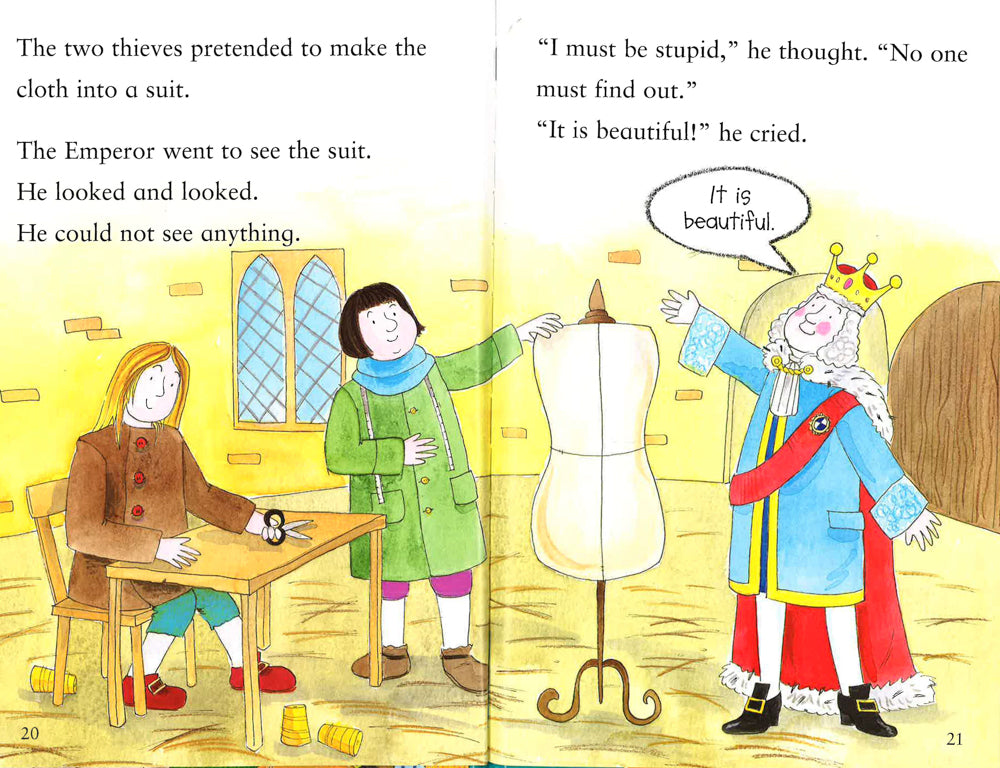 The emperor loves new clothes, so two weavers offer to make him a suit made from magic cloth. But what happens when the emperor parades his new suit around town? Read along with the CD and find out!