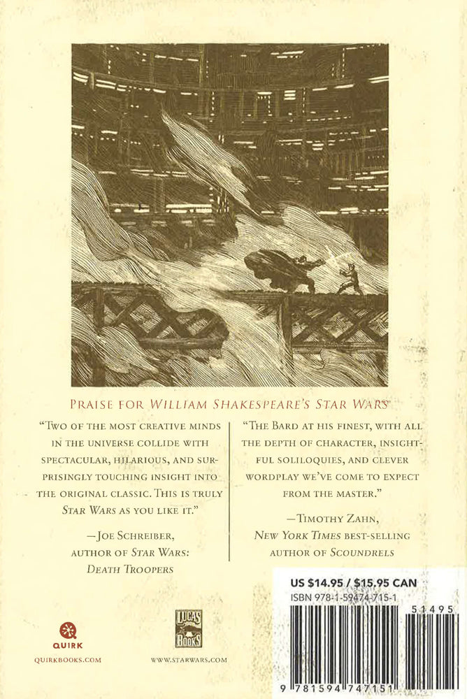 First title in the series, WILLIAM SHAKESPEARE'S STAR WARS, shot to the NYT Bestseller and in just two weeks sold over 7,000 copies in the UK. Over 20,000 copies sold in the UK and counting!The highly-anticipated second installment in the to the New York Times best-selling series WILLIAM SHAKESPEARE'S STAR WARS. The best-selling William Shakespeare's Star Wars strikes back with all-new, all-Elizabethan, officially-licensed retellings of Episode V. Return to the star-crossed galaxy far, far away as the brooding young hero, power-mad emperor, and jesting droids match wits, struggle for power, and soliloquize in elegant and impeccable iambic pentameter. Illustrated with beautifully intricate, Renaissance-style artwork, the saga of swashbuckling, swordfighting, and romance unfolds like you've never read it before.