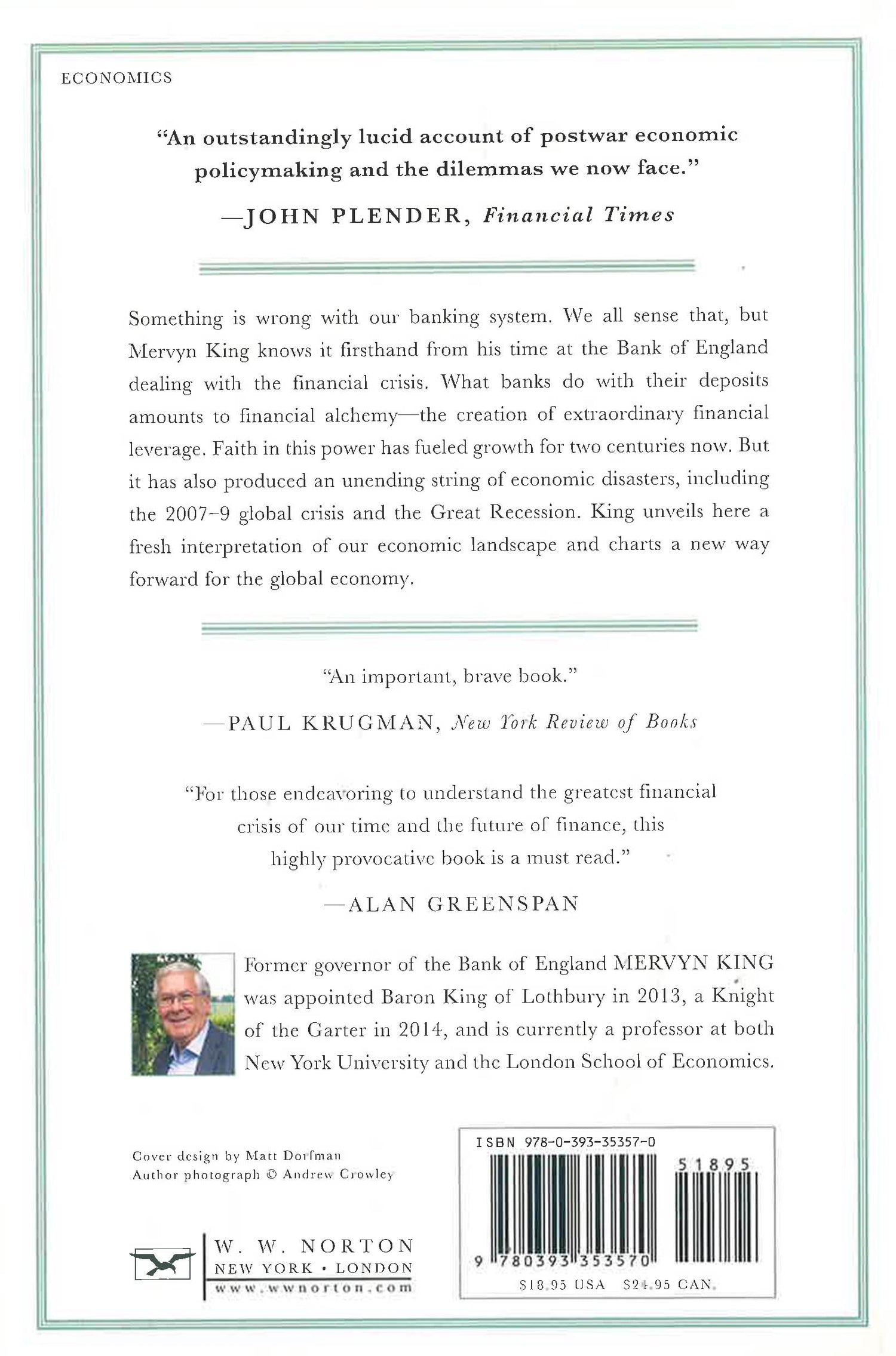 Something is wrong with our banking system. We all sense that, but Mervyn King knows it firsthand; his ten years at the helm of the Bank of England, including at the height of the financial crisis, revealed profound truths about the mechanisms of our capitalist society. In The End of Alchemy he offers us an essential work about the history and future of money and banking, the keys to modern finance.
