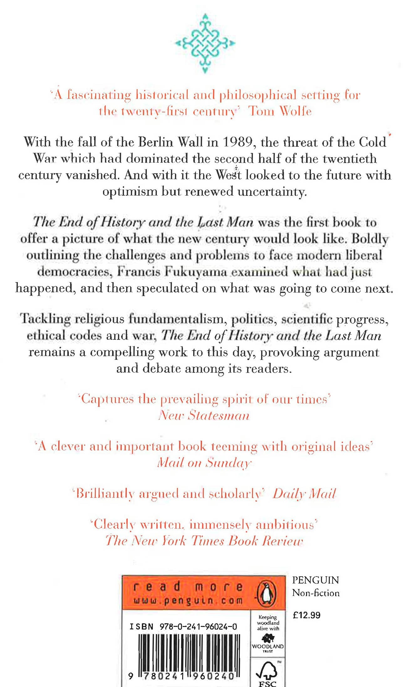 Tackling religious fundamentalism, politics, scientific progress, ethical codes and war, The End of History and the Last Man remains a compelling work to this day, provoking argument and debate among its readers.