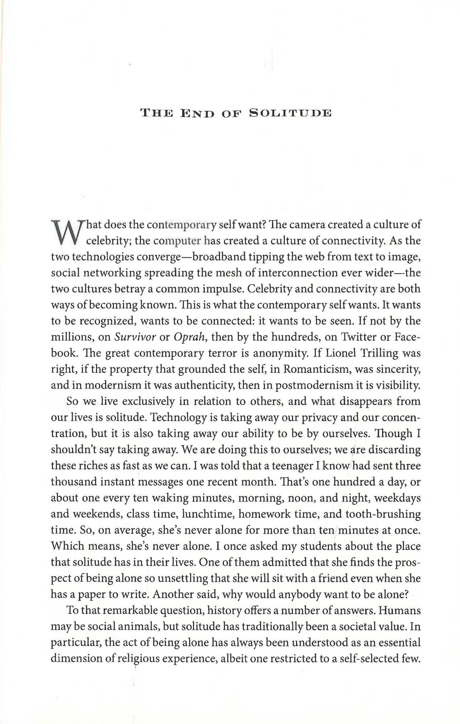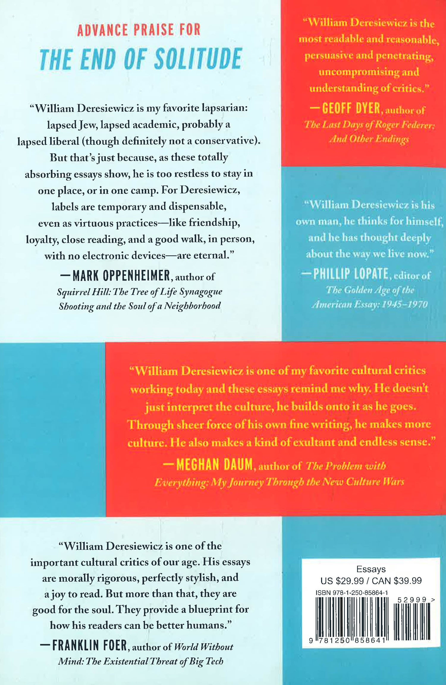 What is the internet doing to us? What is college for? What are the myths and metaphors we live by? These are the questions that William Deresiewicz has been pursuing over the course of his award-winning career. The End of Solitude brings together more than forty of his finest essays, including four that are published here for the first time. Ranging widely across the culture, they take up subjects as diverse as Mad Men and Harold Bloom, the significance of the hipster, and the purpose of art. Drawing on the past, they ask how we got where we are. Scrutinising the present, they seek to understand how we can live more mindfully and freely, and they pose two fundamental questions: What does it mean to be an individual, and how can we sustain our individuality in an age of networks and groups?