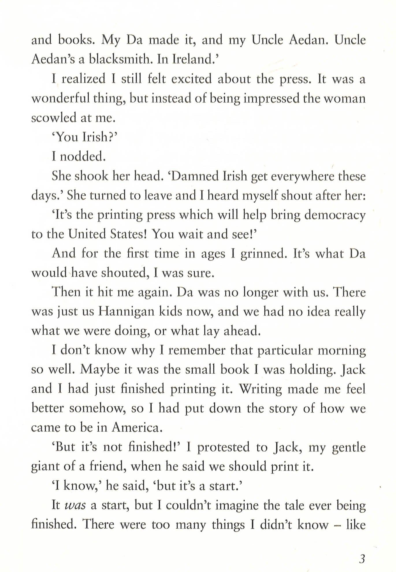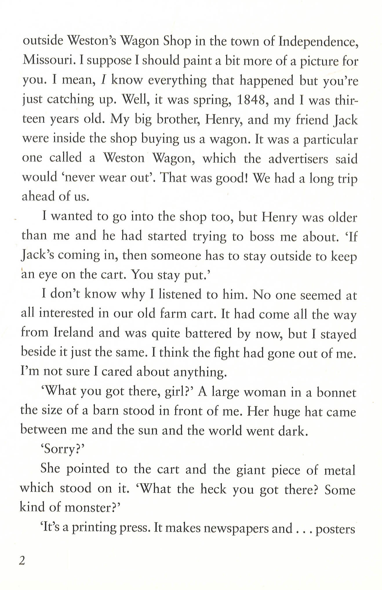 11-year-old Slim Hannigan and her family left their home in Ireland to travel to America - in search of a better life. It has been so long and such a journey that Slim Hannigan and the rest of her family can't even imagine what home looks like anymore. And there are many, many miles across America for them to travel before they reach their destination. Between them and the home of their uncle lie thousands of miles of dangerous land, wild animals and strangers who do not wish them well. Slim has to draw on bravery like she's never known to keep her family together and to keep them moving forward.