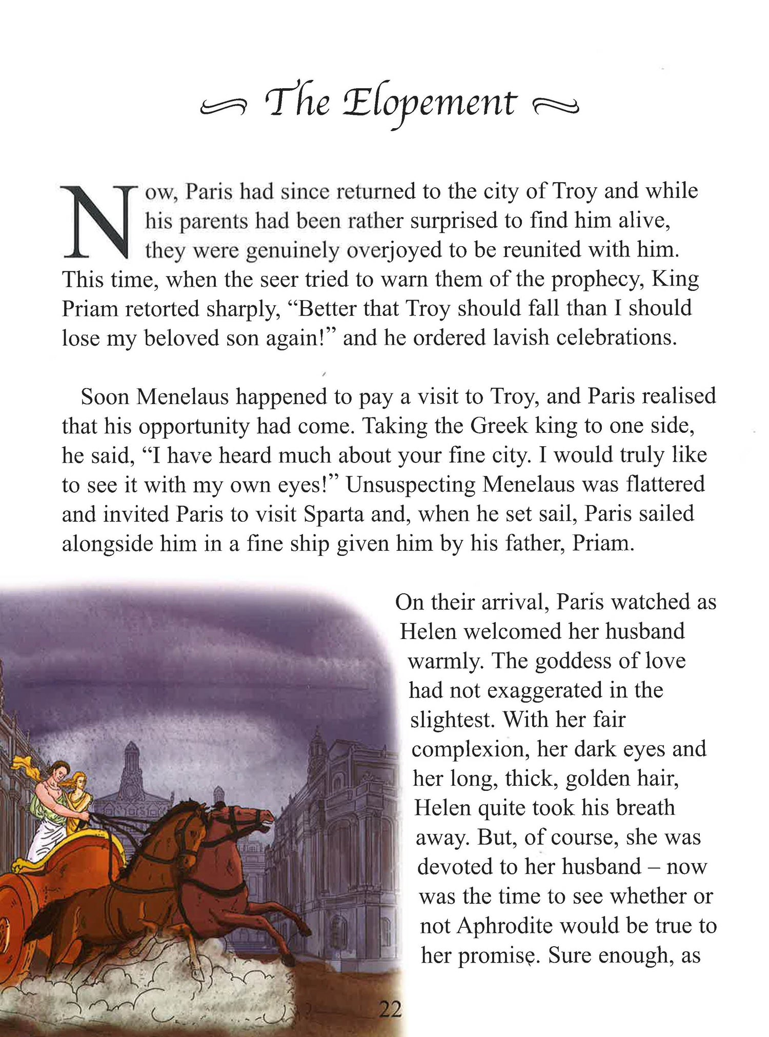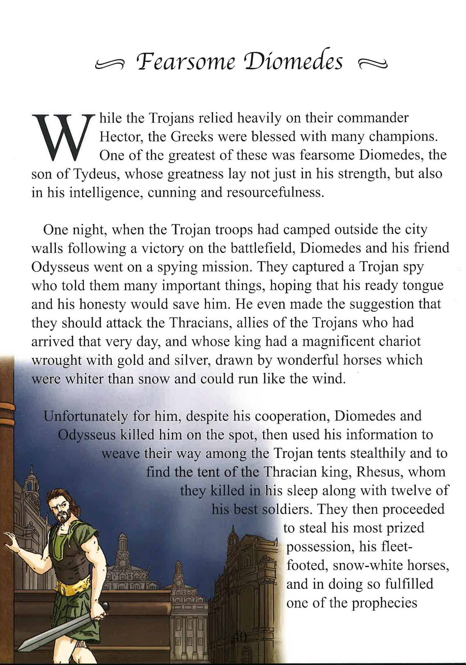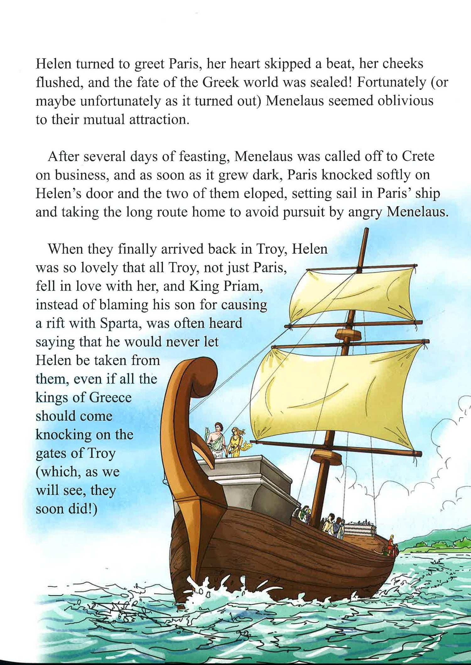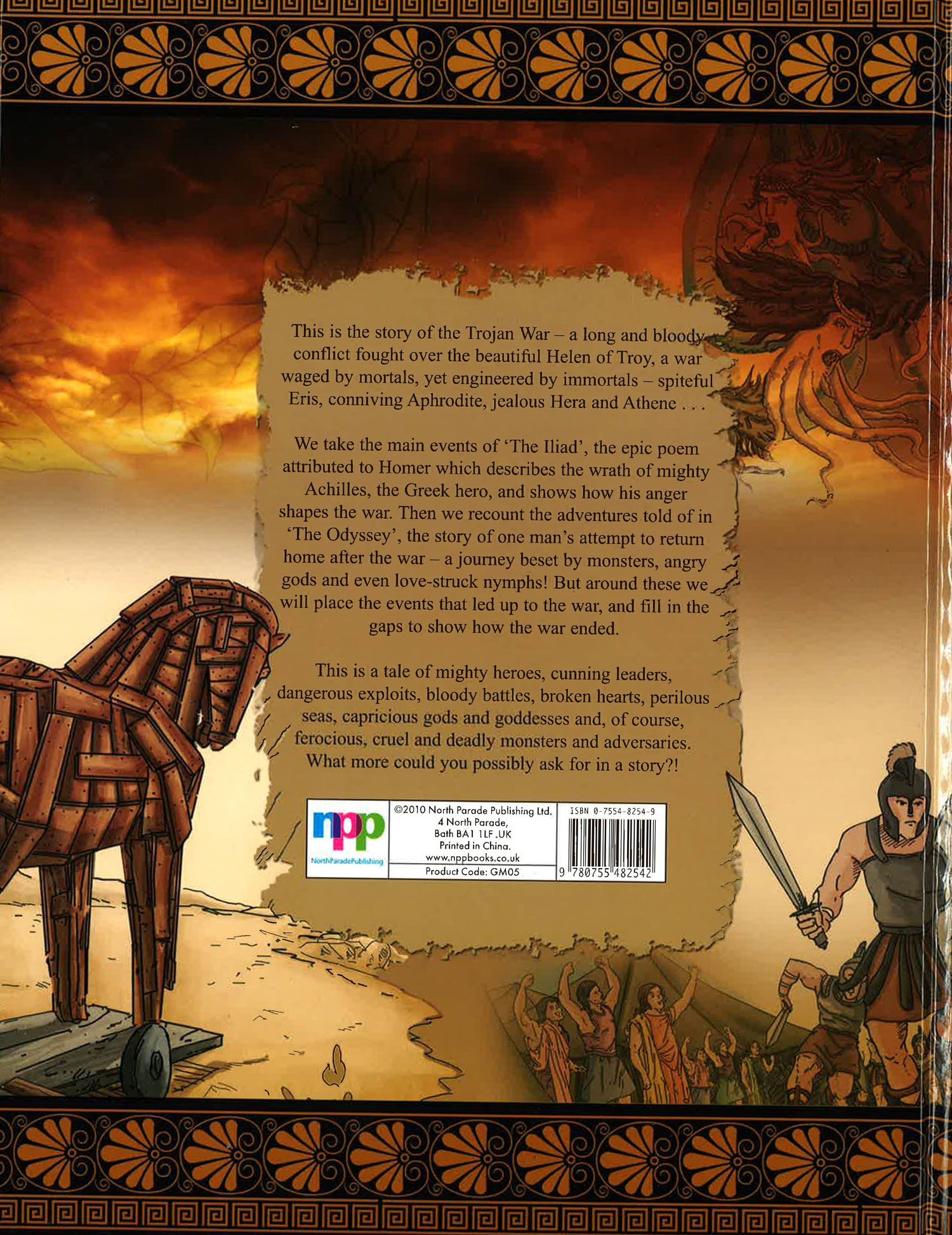 This is the story of the Trojan War - a long and bloody conflict fought over the beautiful Helen of Troy, a war waged by mortals, yet engineered by immortals - spiteful Eris, conniving Aphrodite, jealous Hera and Athene. This book takes the main evens of 'The Iliad', the epic poem attributed to Homer which describes the wrath of might Achilles, the Greek hero, and shows how his anger shapes the war. Then recounts the adventures told of in 'The Odyssey', the story of one man's attempt to return home after the war - a journey beset by monsters, angry gods and even love - struck nymphs! But around these are placed the events that led up the war, and fill in the gaps to show how the war ended. This is a tale of mighty heroes, cunning leaders, dangerous exploits, bloody battles, broken hearts, perilous seas, capricious gods and goddesses and, of course, ferocious, cruel and deadly monsters and adversaries. What more could you possibly ask for in a story?