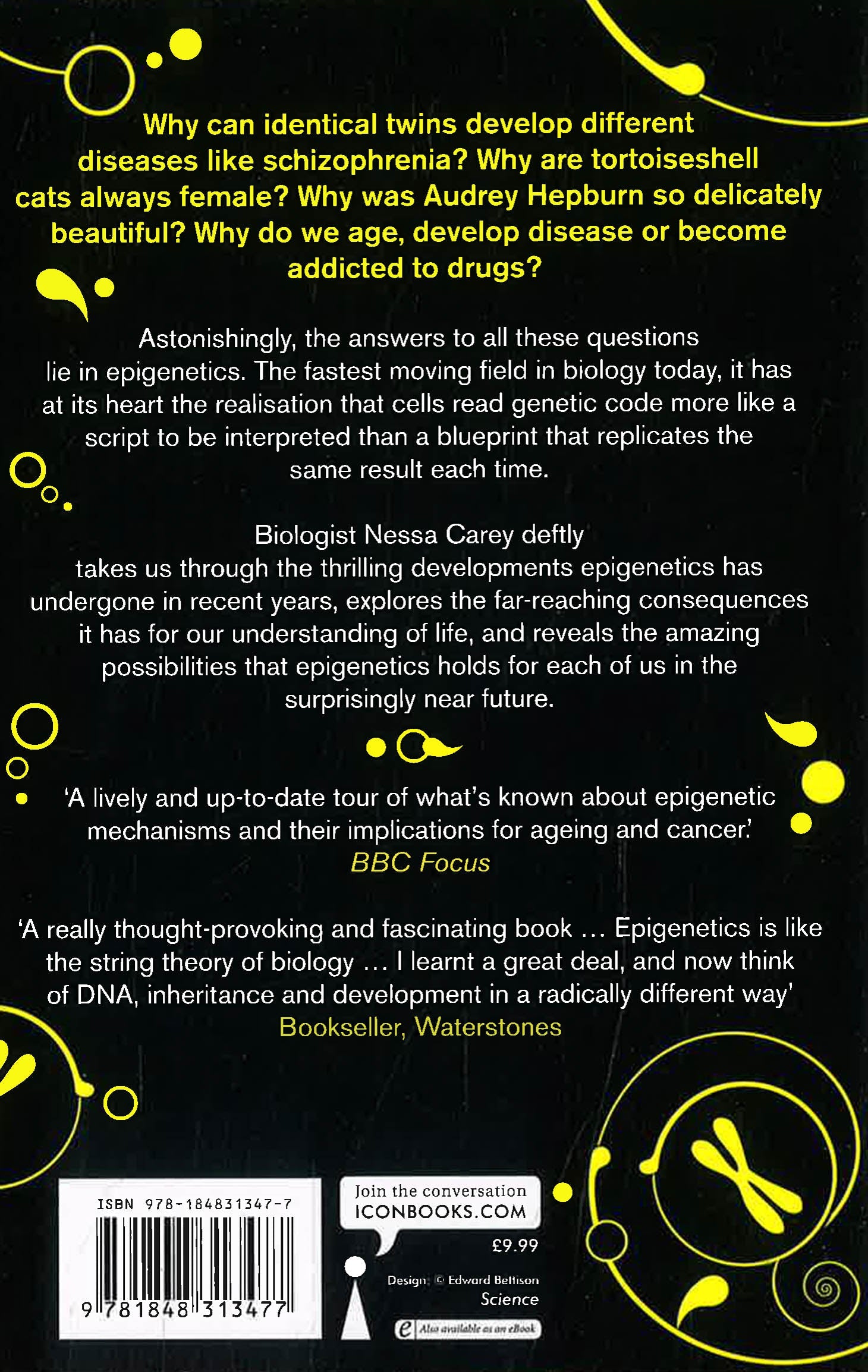 At the beginning of this century enormous progress had been made in genetics. The Human Genome Project finished sequencing human DNA. It seemed it was only a matter of time until we had all the answers to the secrets of life on this planet. The cutting-edge of biology, however, is telling us that we still don't even know all of the questions. How is it that, despite each cell in your body carrying exactly the same DNA, you don't have teeth growing out of your eyeballs or toenails on your liver? How is it that identical twins share exactly the same DNA and yet can exhibit dramatic differences in the way that they live and grow? It turns out that cells read the genetic code in DNA more like a script to be interpreted than a mould that replicates the same result each time. This is epigenetics and it's the fastest-moving field in biology today. The Epigenetics Revolution traces the thrilling path this discipline has taken over the last twenty years. Biologist Nessa Carey deftly explains such diverse phenomena as how queen bees and ants control their colonies, why tortoiseshell cats are always female, why some plants need a period of cold before they can flower, why we age, develop disease and become addicted to drugs, and much more. Most excitingly, Carey reveals the amazing possibilities for humankind that epigenetics offers for us all - and in the surprisingly near future.