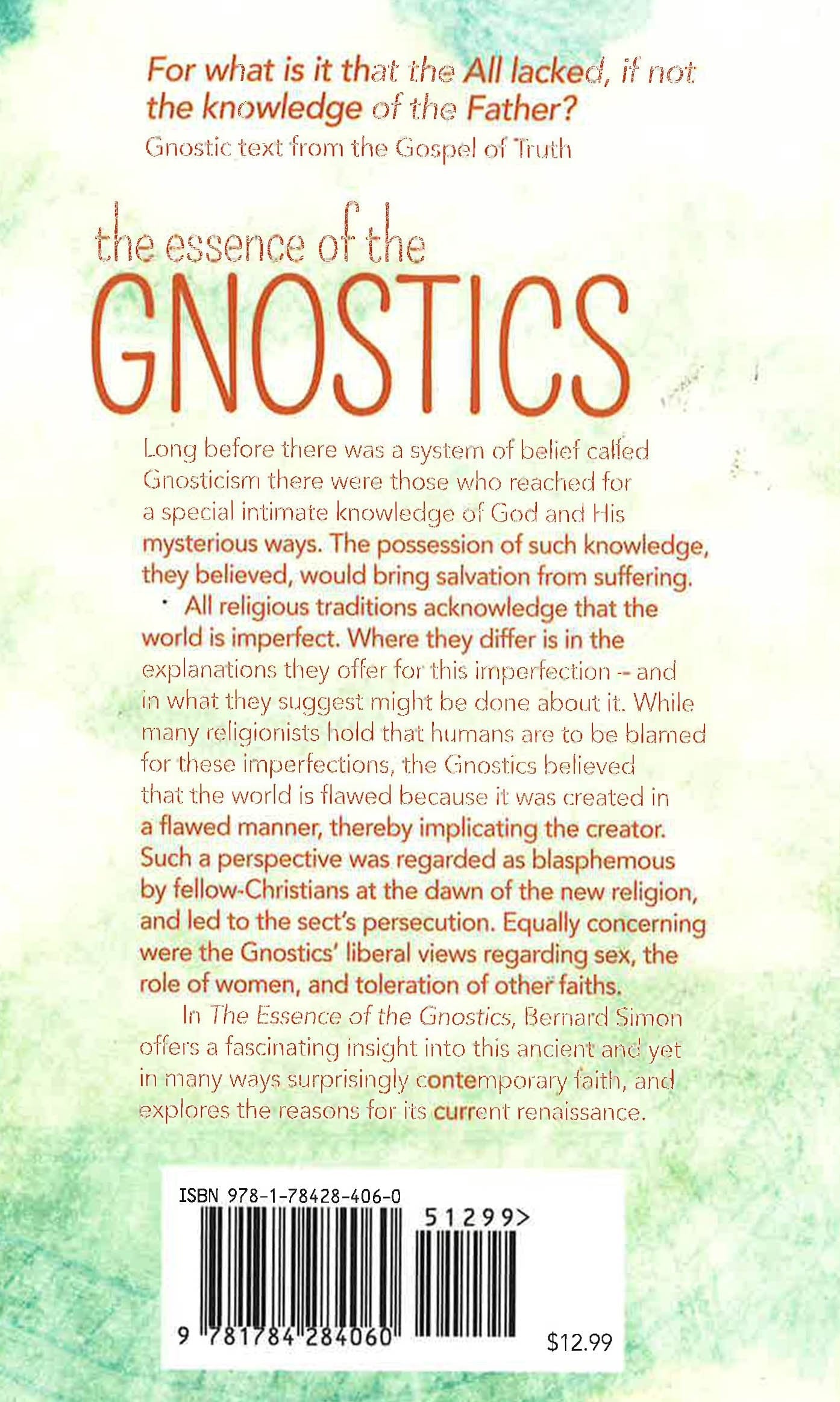 Long before there was a system of belief called Gnosticism there were those who reached for a special intimate knowledge of God and His mysterious ways. The possession of such knowledge, they believed, would bring salvation from suffering. All religious traditions acknowledged that the world is imperfect. Where they differ is in the explanations they offer for this imperfection-and in what they suggest might be done about it. While many religionists hold that humans are to be blamed for these imperfections, the Gnostics believed that the world is flawed because it was created in a flawed manner, thereby implicating the creator. Such a perspective was regarded as blasphemous by fellow-Christians at the dawn of the new religion, and led to the sect's persecution. Equally concerning were the Gnostics' liberal views regarding sex, the role of women, and toleration of other faiths. In The Essence of the Gnostics Bernard Simon offers a fascinating insight into this ancient and yet in many ways surprisingly contemporary faith, and explores the reasons for its current renaissance.