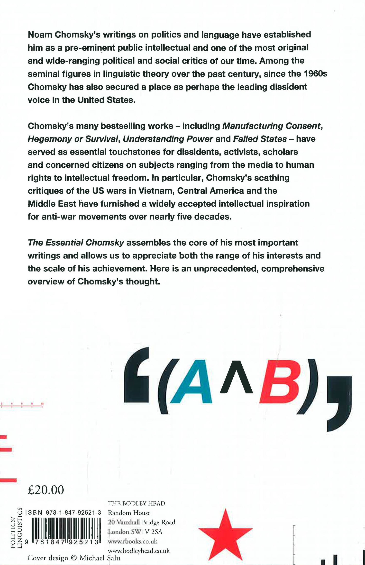 In a single volume, the seminal writings of the world's leading philosopher, linguist and critic, and author of the bestselling Who Rules the World 'The general population doesn't know what's happening, and it doesn't even know that it doesn't know' Noam Chomsky Noam Chomsky's writings on politics and language have established him as one of the most original and wide-ranging political and social critics of our time, and as perhaps the leading dissident voice in the United States. The Essential Chomsky brings together selections from his most important writings, from his groundbreaking critique of B.F. Skinner to his bestselling works Hegemony or Survival and Failed States, concerning subjects ranging from critiques of corporate media and U.S. interventionism to intellectual freedom and the political economy of human rights. Featuring a collection of twenty-five pieces of writing spanning six decades, this is an unparalleled and comprehensive overview of Chomsky's thought