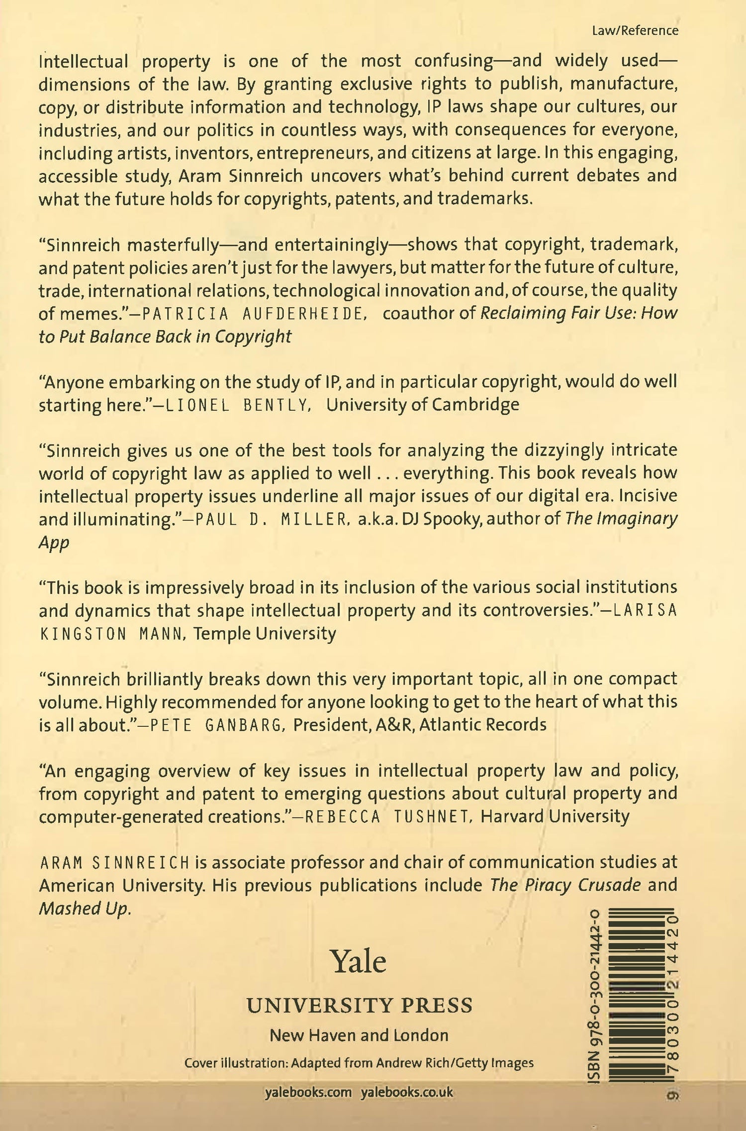 Intellectual property is one of the most confusing―and widely used―dimensions of the law. By granting exclusive rights to publish, manufacture, copy, or distribute information and technology, IP laws shape our cultures, our industries, and our politics in countless ways, with consequences for everyone, including artists, inventors, entrepreneurs, and citizens at large. In this engaging, accessible study, Aram Sinnreich uncovers what’s behind current debates and what the future holds for copyrights, patents, and trademarks.