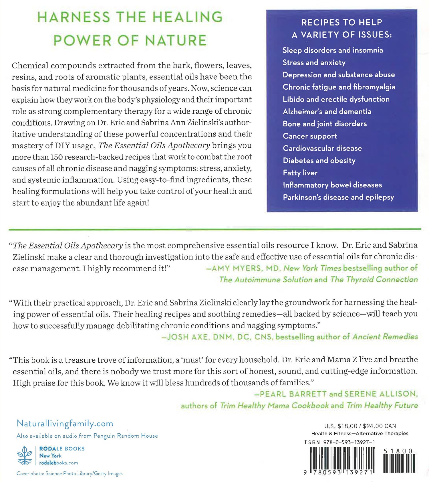 Drawing on their authoritative understanding of these powerful concentrations and their mastery of DIY usage, Dr. Eric and Sabrina Ann Zielinski share more than 150 research-backed and easy-to-prepare topical recipes, capsule remedies, and diffusions that work to combat the root causes of all disease: stress, anxiety, and systemic inflammation. Using oils from more than 70 aromatic plants—from copaiba and lemongrass to turmeric and ylang ylang—their healing formulations include: