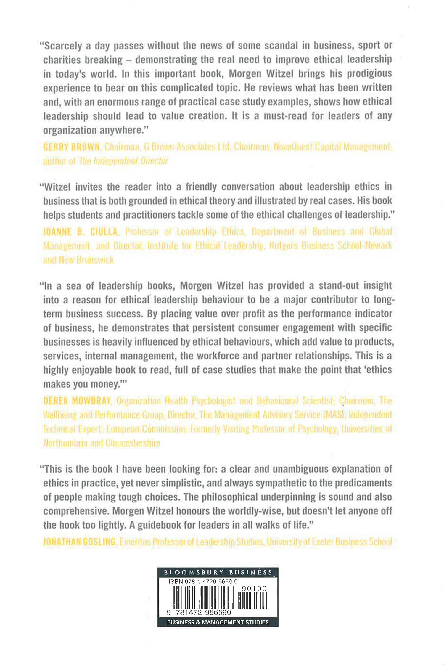 Ethical behaviour by businesses, or their staff, is often seen as the corporate and social responsibility icing on an organizational cake - something that is nice to do but never really essential. But by turning this view around - and making ethical behaviour a primary focus - Witzel shows how businesses can create and maintain long-term competitive advantage. Trust and respect among key stakeholder groups, particularly employees and customers, cannot be overstated in their importance to an organization's success: trust engenders loyalty and good reputation, which in turn builds brand value. However, while ethical behaviour is key to trust-building, in order for an organization to see lasting, positive outcomes it needs to go deeper than something managers do out of a sense of moral duty. The Ethical Leader shows why ethical practice has to be the platform on which a strong and enduring business can be built, and leaders and managers need to provide the necessary tools and insights to enable this to happen. Witzel offers a practical introduction to some of the key concepts in ethics, including how to deal with ethical paradoxes and making ethical decisions. The book explores the specifics of what makes an ethical leader, and how leaders can communicate values and standards across an organization in order to engage the trust of employees, consumers, shareholders and the wider community.