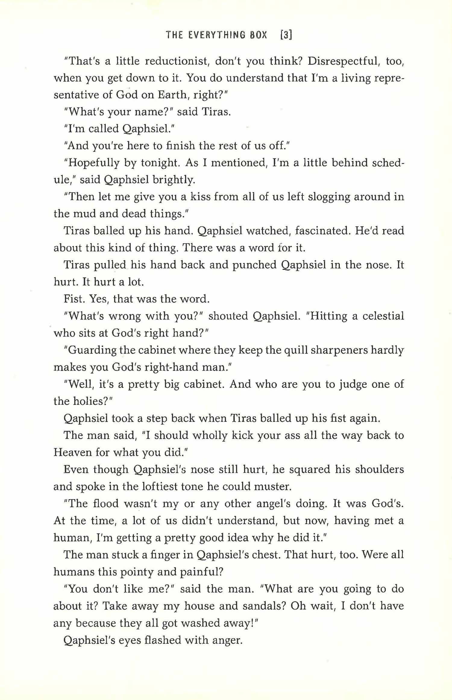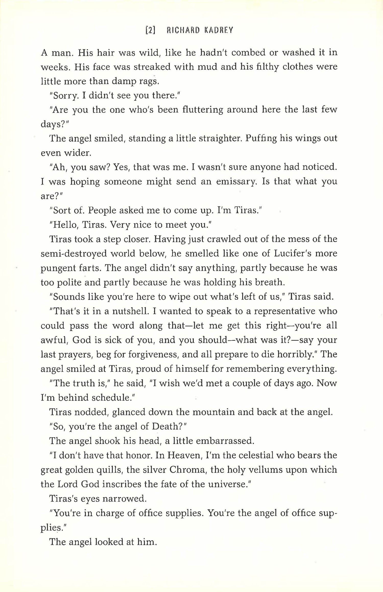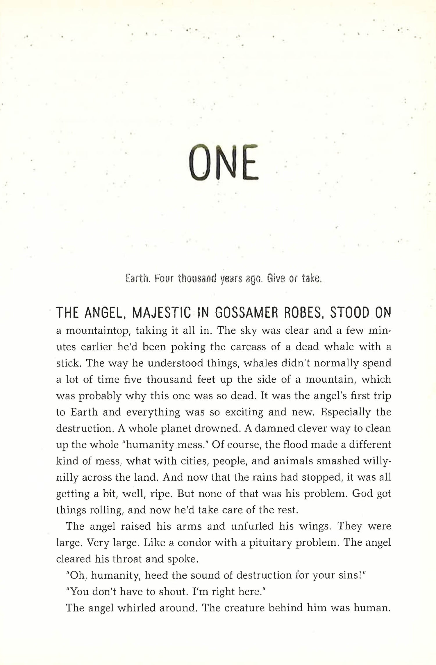 2000 B.C. -- A beautiful, ambitious angel stands on a mountaintop, surveying the world and its little inhabitants below. He smiles because soon, the last of humanity who survived the great flood will meet its end, too. And he should know. He's going to play a big part in it. Our angel usually doesn't get to do field work, and if he does well, he's certain he'll get a big promotion.
