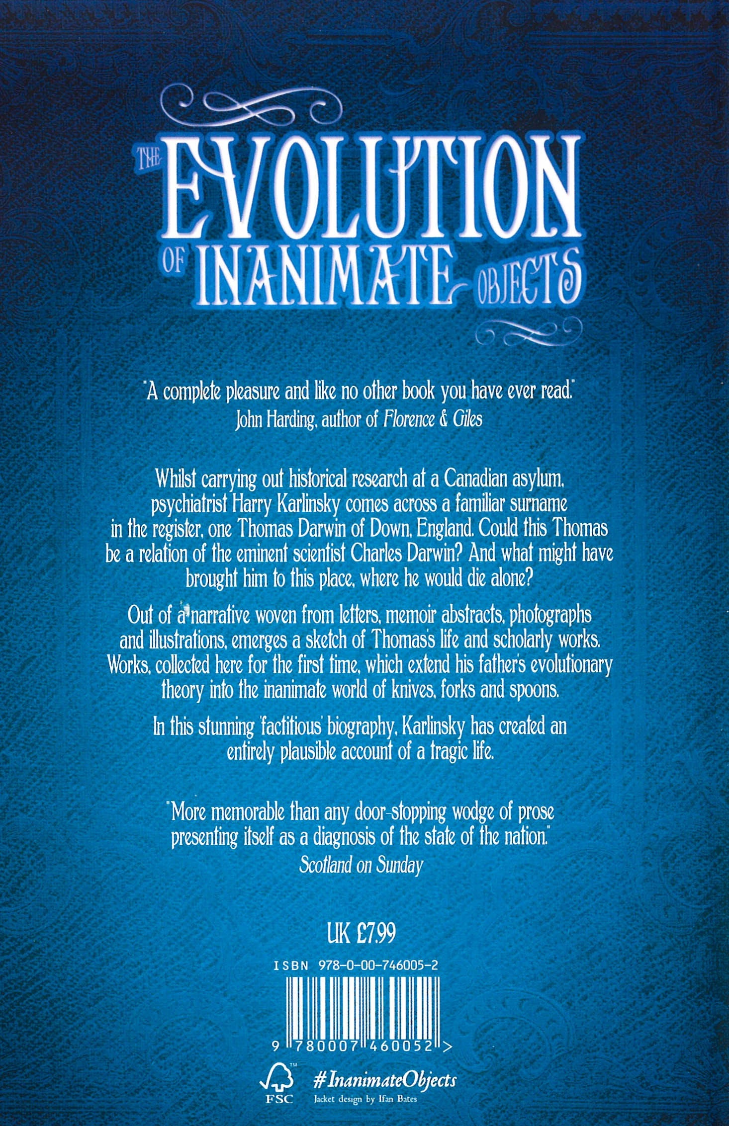 While carrying out historical research at an Ontario asylum, psychiatrist Harry Karlinsky comes across a familiar surname in the register. Could the "Thomas Darwin of Down, England" be a relative of the famous Charles Darwin? In a narrative woven from letters, photographs, historical documents and illustrations, what emerges is a sketch of Thomas’s life - the last of eleven children born to Charles Darwin. It tells of his obsession with extending his father’s studies into the realm of inanimate objects – kitchen utensils, to be precise. Can the theory of evolution be applied to knives, forks and spoons? In this stunning factitious biography, Karlinsky presents us with the tragically short life of Thomas Darwin, leaving the reader to decide how much is fact and how much is fiction.