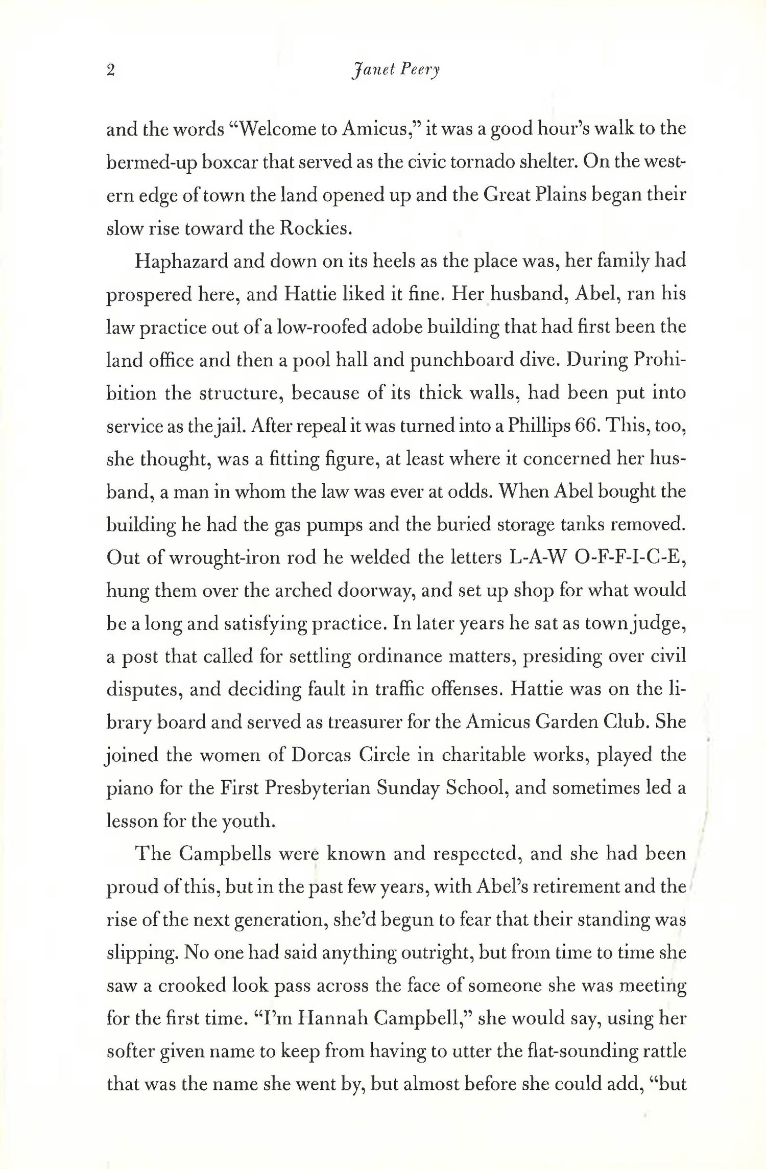 On a summer evening in the blue-collar town of Amicus, Kansas, the Campbell family gathers for a birthday dinner for their ailing patriarch, retired judge Abel Campbell, prepared and hosted by their still-hale mother Hattie. But when Billy, the youngest sibling - with a history of addiction, grand ideas, and misdemeanors - passes out in his devil’s food cake, the family takes up the unfinished business of Billy’s sobriety.Billy’s wayward adventures have too long consumed their lives, in particular Hattie’s, who has enabled his transgressions while trying to save him from Abel’s disappointment. As the older children - Doro, Jesse, ClairBell, and Gideon - contend with their own troubles, they compete for the approval of the elderly parents they adore, but can’t quite forgive.With knowing humor and sure-handed storytelling, Janet Peery reveals a family at its best and worst, with old wounds and new, its fractures and feuds, and yet its unbreakable bonds.