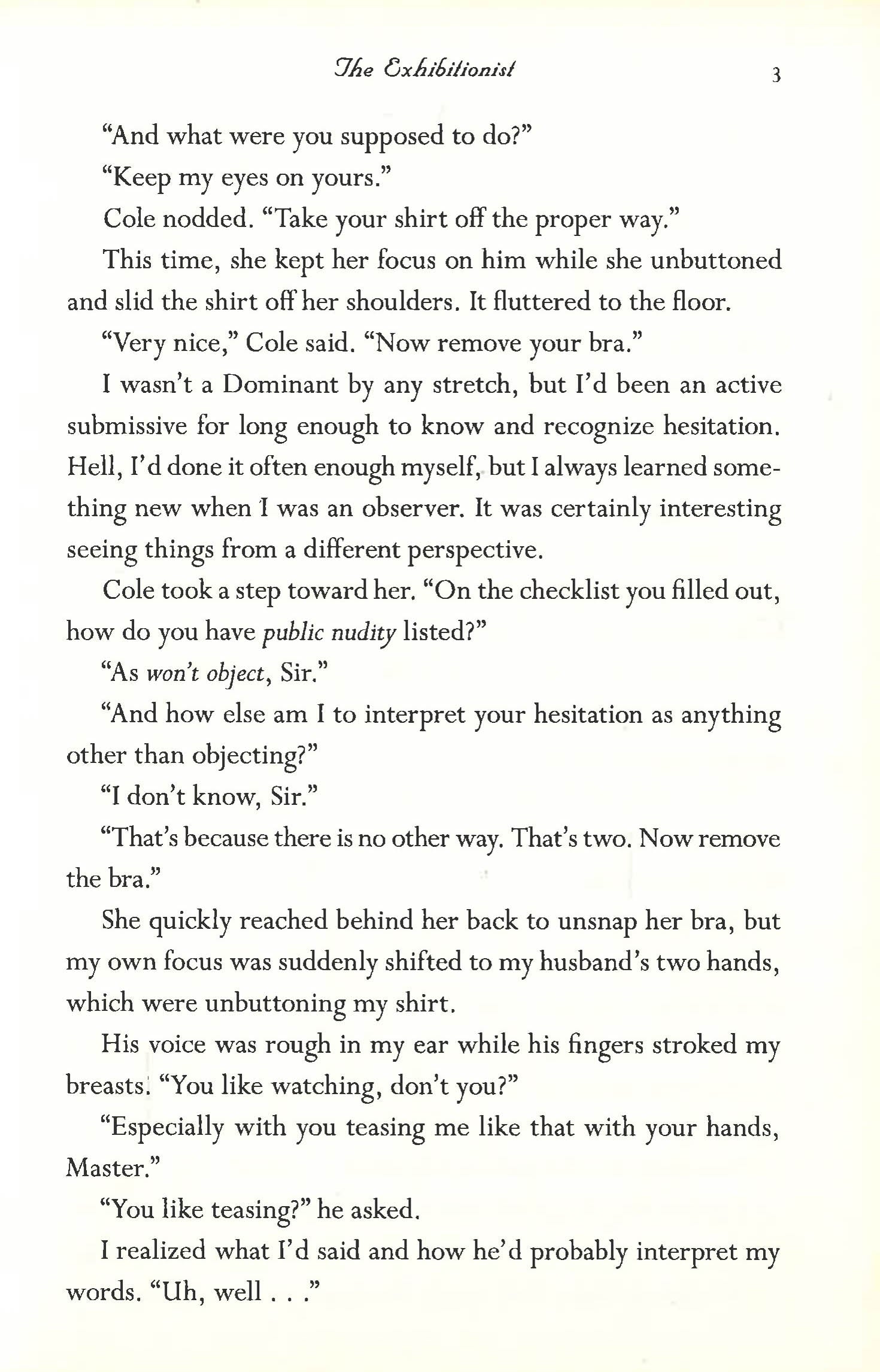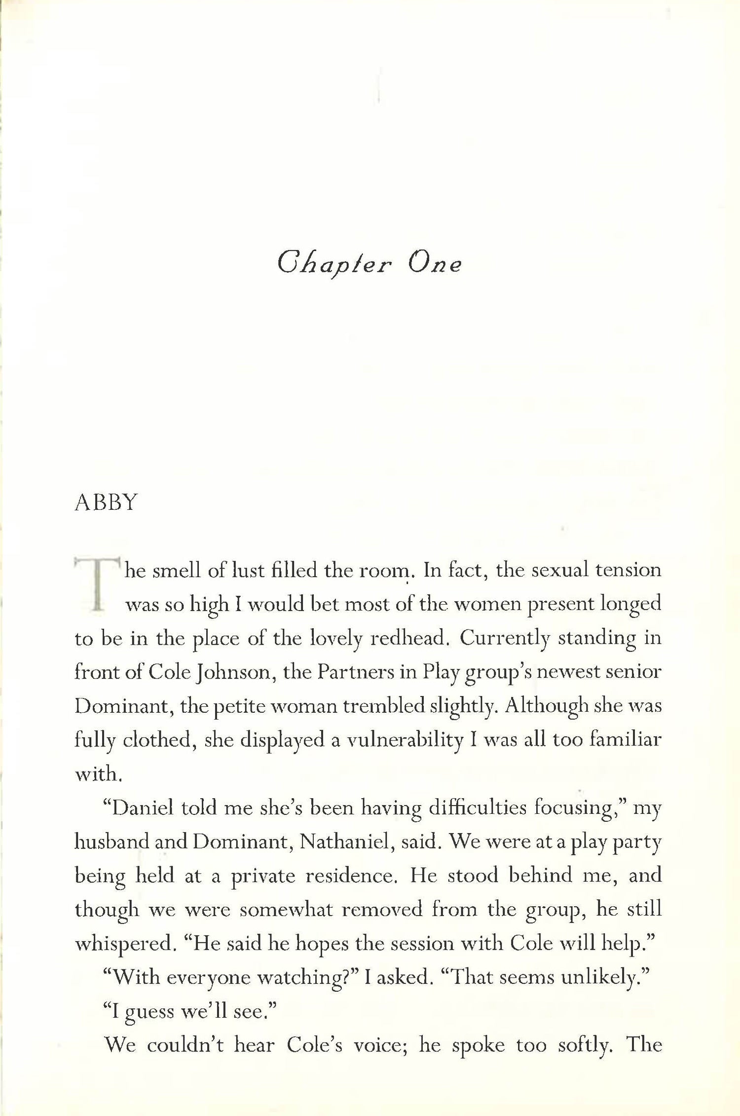 She's ready for even more... When Abby West discovered her submissive desires, she felt like she was born anew. But lately, her Dominant husband hasn't been the demanding Master who once fulfilled her every passion. Abby begins to crave something else - and to wonder if Nathaniel can still push her past her boundaries. Nathaniel knows that Abby belongs to him completely, but even he can't ignore the pleasure on her face as they get to know their new BDSM group. They've invited Nathaniel to guide their group to a new level, and he's promised to show them the way, even as he recommits to fulfilling his beautiful submissive wife's every desire. Only this time, uncovering her sexual limits may also expose their relationship to more conflict than it can withstand...