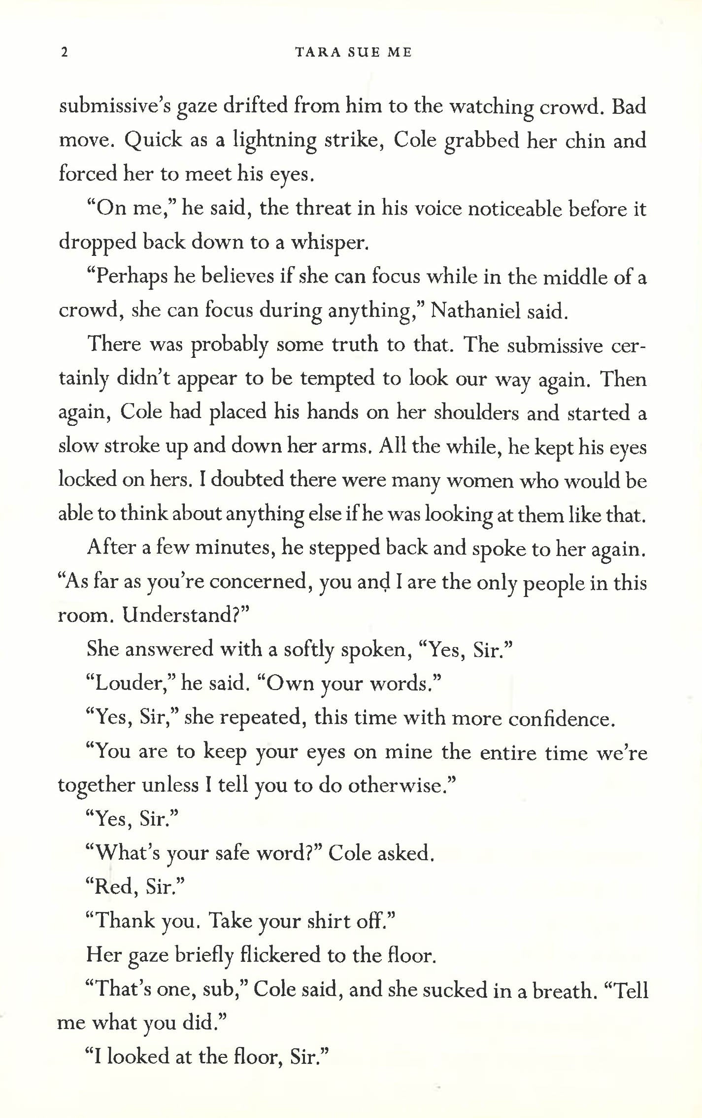 Fans of E. L. James, Sylvia Day, Maya Banks and Beth Kery will be seduced by New York Times bestselling author Tara Sue Me's electrifying Submissive series.