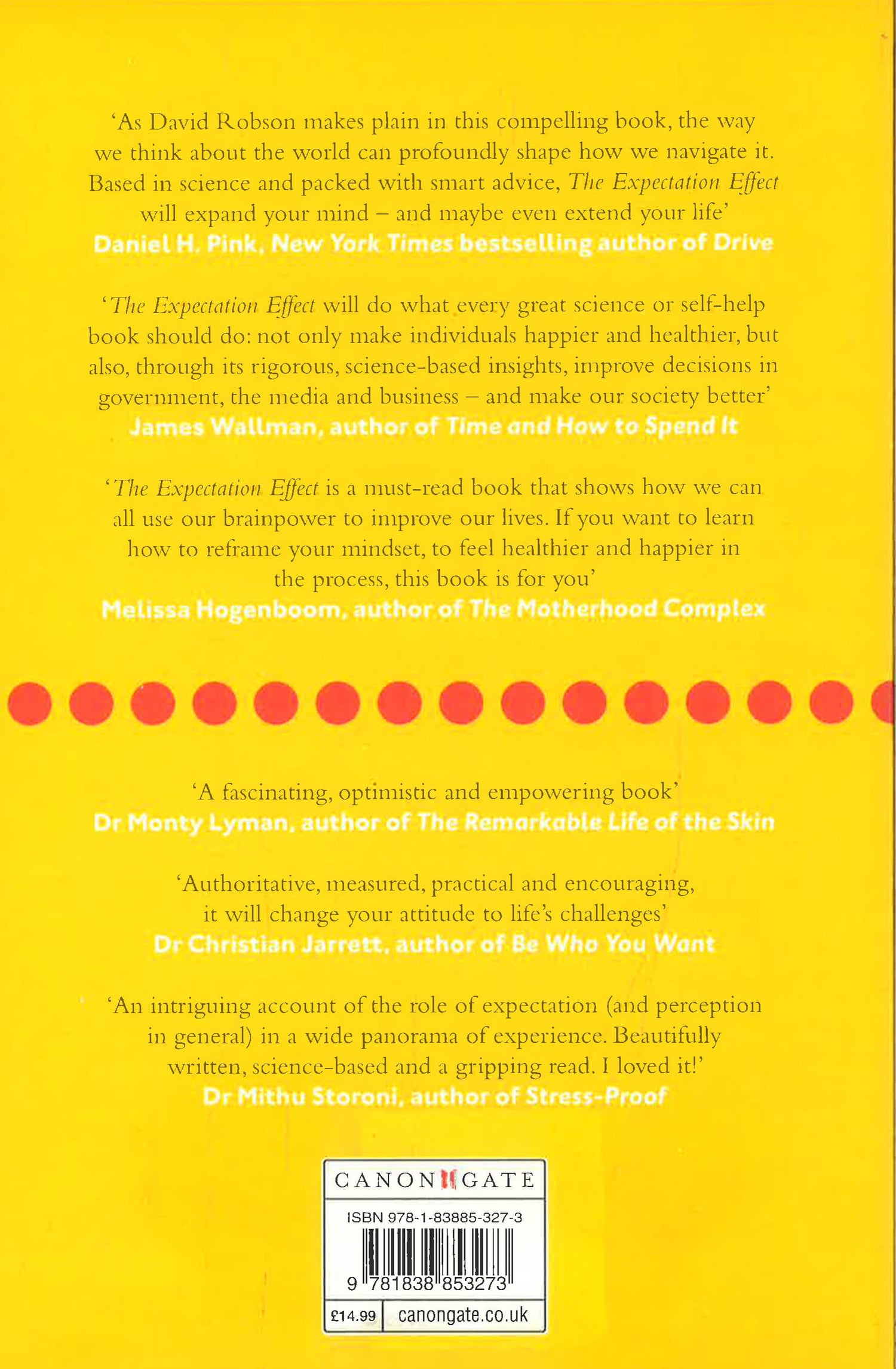 In this book David Robson takes us on a tour of the cutting-edge research happening right now that suggests our expectations shape our experience. Bringing together fascinating case studies and evidence-based science, The Expectation Effect uncovers new techniques that we can all use to improve our fitness, productivity, intelligence, health and happiness.
