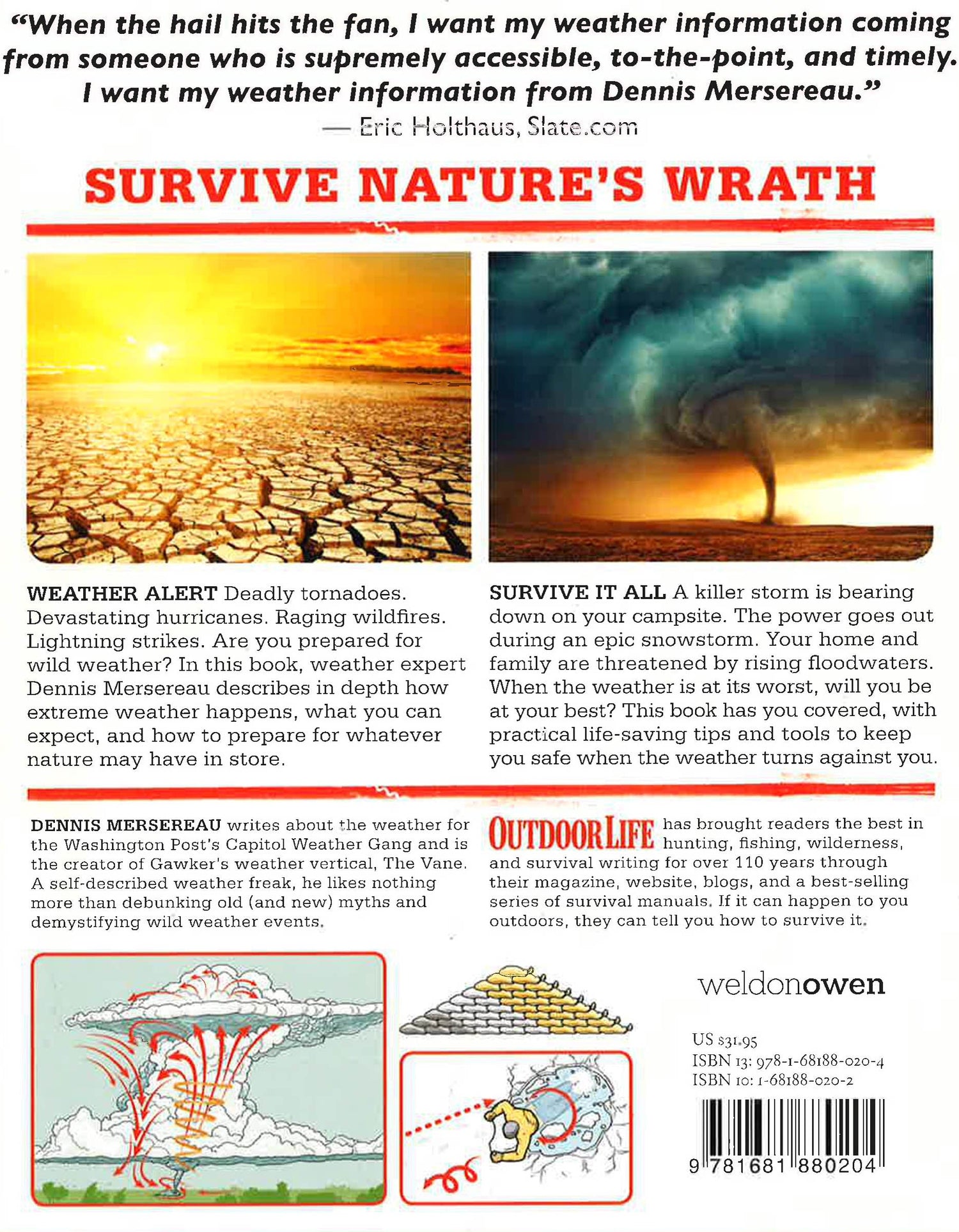 Extreme weather has the ability to leave us devastated, but with the easy-to-follow Extreme Weather Survival Manual you'll be ready for anything Mother Nature throws at you. Dennis Mersereau and the editors of Outdoor Life magazine offer their life saving advice to help you survive blizzards, hurricanes, firestorms and much more. As a weather reporter, it's only natural that Dennis Mersereau is a self-proclaimed weather freak. Slate.com said of him, "Don't mess with the Mersereau. He will find your weather fables and he will crush them . . . We need more Dennises. In fact, the National Weather Service itself should be run by Dennis, with each local office headed by a Dennis-like weather blogger tasked with explaining the relevant weather news of the day, and entertaining us when the weather is boring." Luckily for you, he's partnered with the outdoor experts at Outdoor Lifeto bring you the foolproof guide to surviving extreme weather. From how to read the sky, to which of your grandma's no-fail weather predicting tips actually work, to how to survive a Storm of the Century, this book has you covered. Filled with weird weather facts (what are those weird sounds under the snow and should you worry about them?) to hands-on survival hints (literally hands-on. Like, don't lose your fingers to frostbite) to true tales of amazing survival, the Extreme Weather Survival Manual is the one book you need to weather any storm. With high-quality design, intricate detail, and a durable flexicover--this manual is the perfect gift!