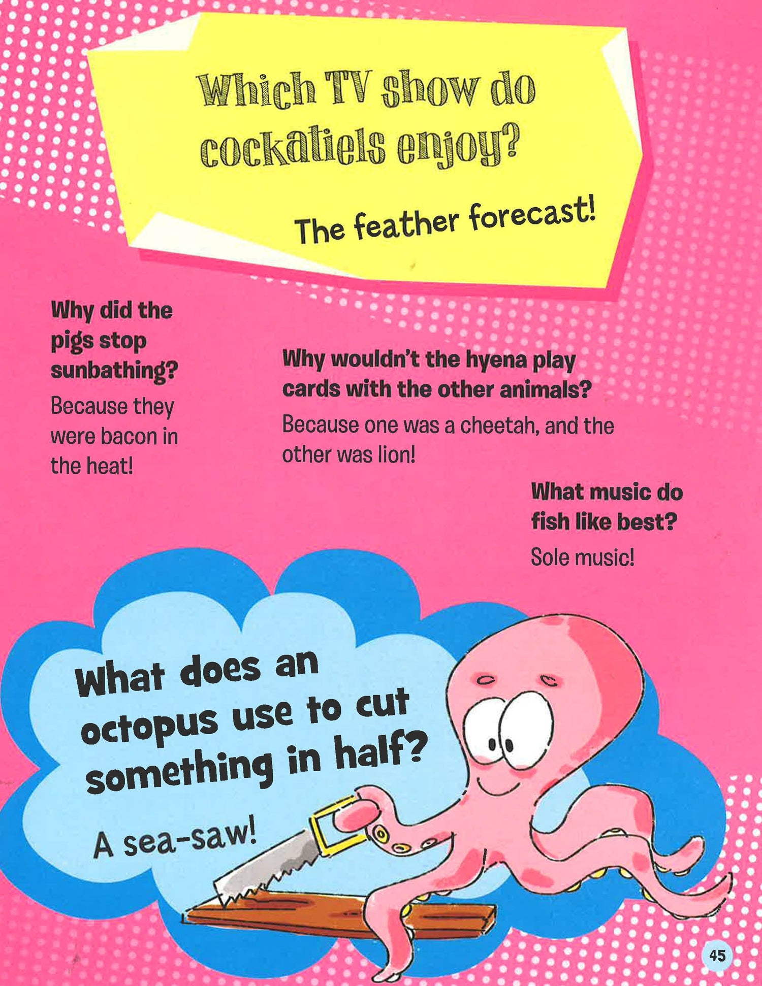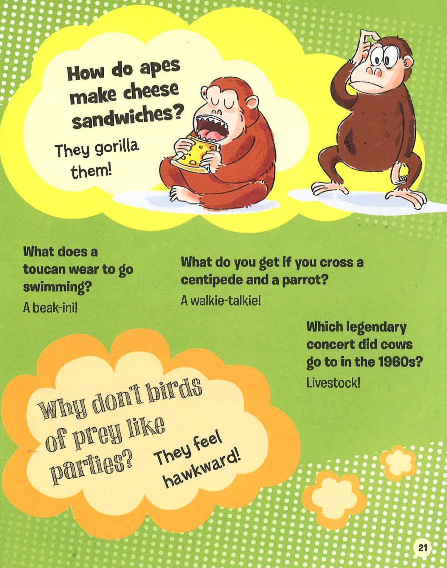 What do you get if you cross a comedian with an orange? Peels of laughter! Where do pigs live in a city? In a sty-scraper! These and hundreds of other silly jokes can be found within the pages of this hilarious book. Perfect for extremely silly children aged 7 and up.