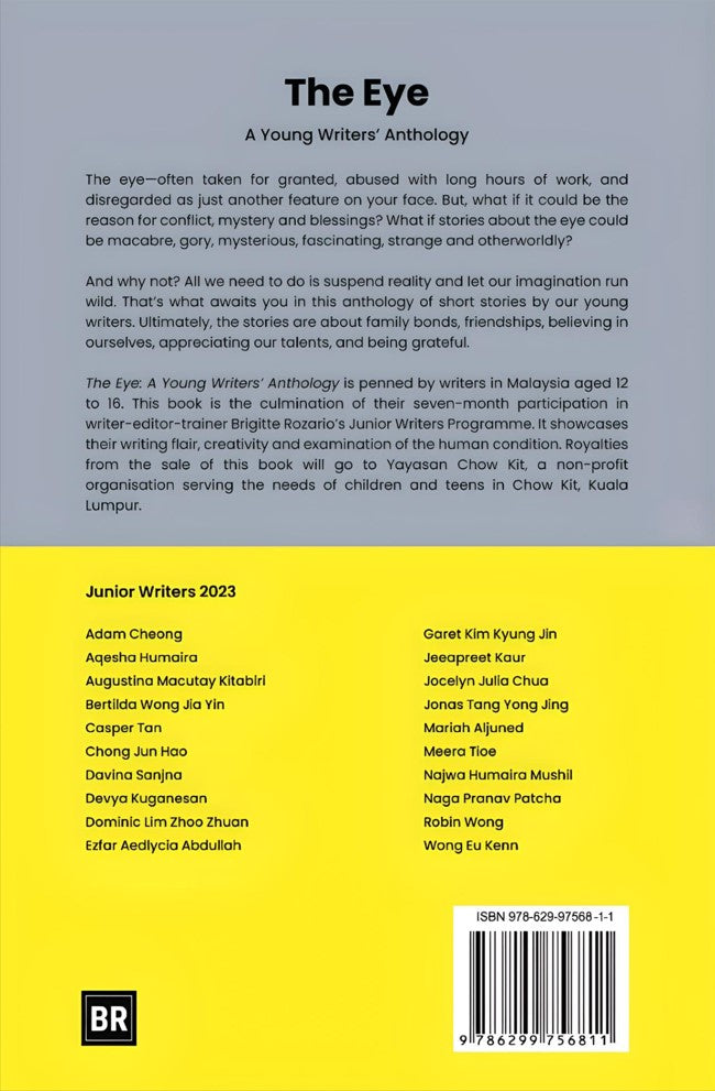 The eye — often taken for granted, abused with long hours of work, and disregarded as just another feature on your face. But, what if it could be the reason for conflict, mystery and blessings? What if stories about the eye could be macabre, gory, mysterious, fascinating, strange and otherworldly? And why not? All we need to do is suspend reality and let our imagination run wild. That’s what awaits you in this anthology of short stories by our young writers. Ultimately, the stories are about family bonds, friendships, believing in ourselves, appreciating our talents, and being grateful. The Eye: A Young Writers’ Anthology is penned by writers in Malaysia aged 12 to 16. This book is the culmination of their seven-month participation in writer-editor-trainer Brigitte Rozario’s Junior Writers Programme. It showcases their writing flair, creativity and examination of the human condition.
