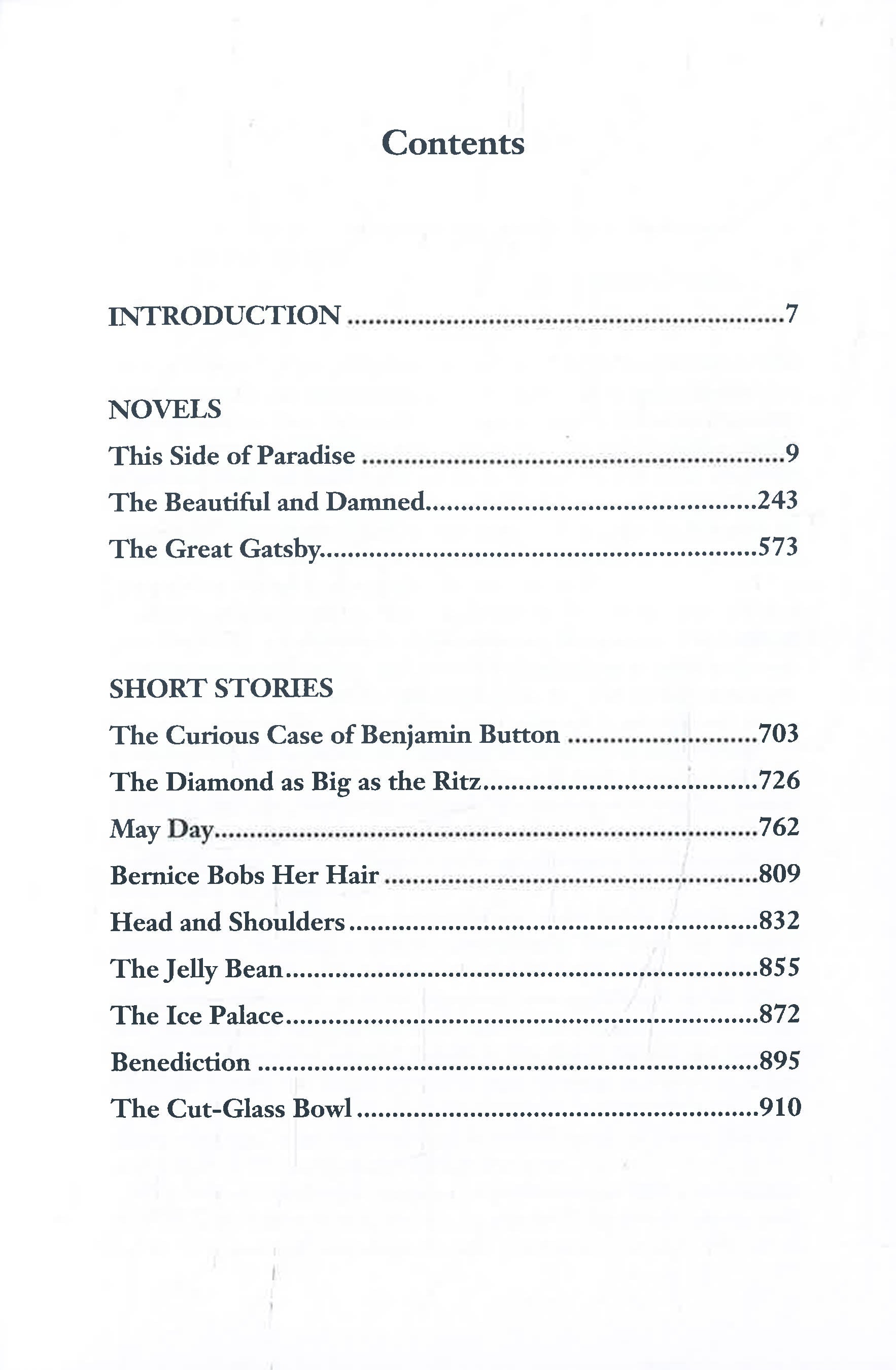- The Curious Case of Benjamin Button & Other Tales of the Jazz Age (including the novellas 'May Day' and 'The Diamond as Big as the Ritz').