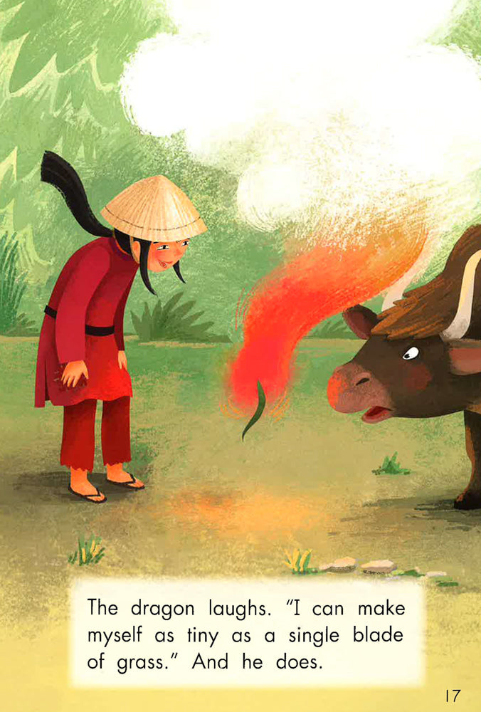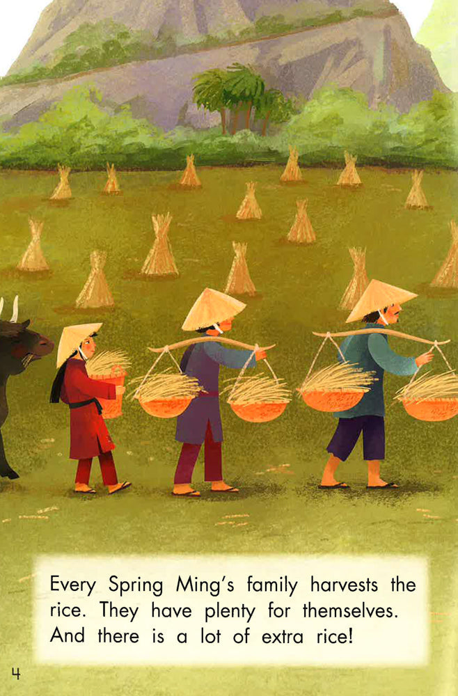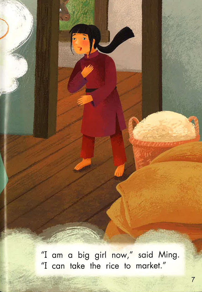 Ming and her family harvest rice at the base of a tall mountain. And if her family could sell the extra rice at market on the other side of the mountain, they could live comfortably. But her father says the dragon on the mountain steals the rice. Ming decides to try on her own to get past the bully dragon. So she packs up her ox and heads to the market. When the dragon tries to stop her, Ming outwits the bully in a clever way and makes it safely to market and back home with the money, proving that a boastful bully is no match for a smart girl.