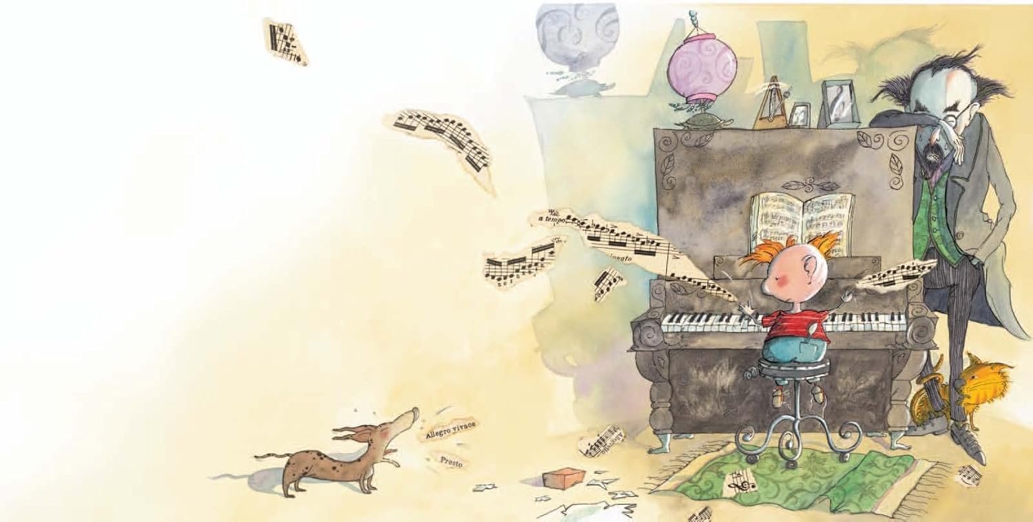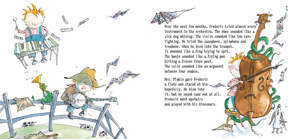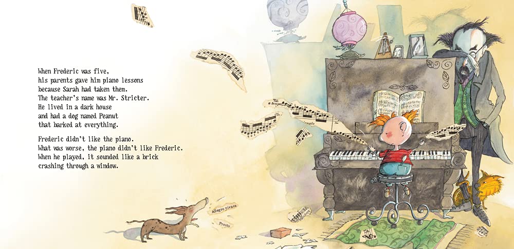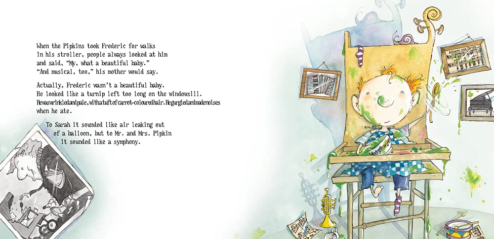 A story about finding your own way to follow in your family’s footsteps, featuring 12 fabulous songs. Oh, that darn Frederic Pipin! He’ll do anything to get out of learning how to play an instrument, much to the chagrin of his loving parents, who named him after the great Chopin. Piano lessons with Mr. Stricter prove to be disastrous, so he has a go at the cello, the oboe, and the clarinet… but sadly, nothing fits. Until one glorious day, he attends his sister's recital and falls under the spell of an incredible conductor. To the amazement of the Pipkin family, what follows is the discovery of Frederic’s new gift and a fabulous new song. Includes a CD (and a unique digital download code) featuring a dozen pop-rock songs inspired by the story. WINNER OF THE PARENTS’ CHOICE RECOMMENDED AWARD