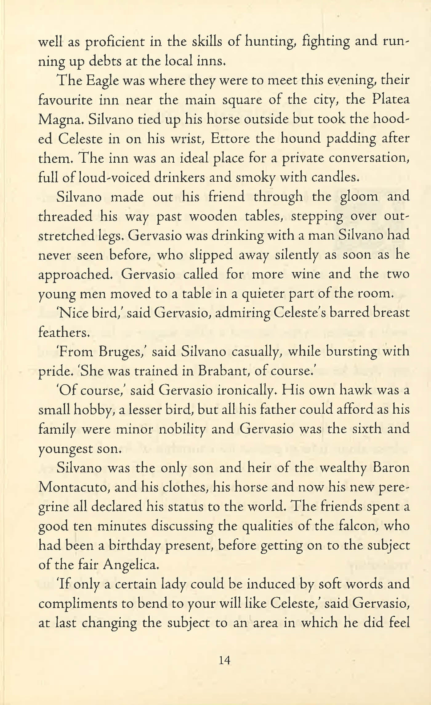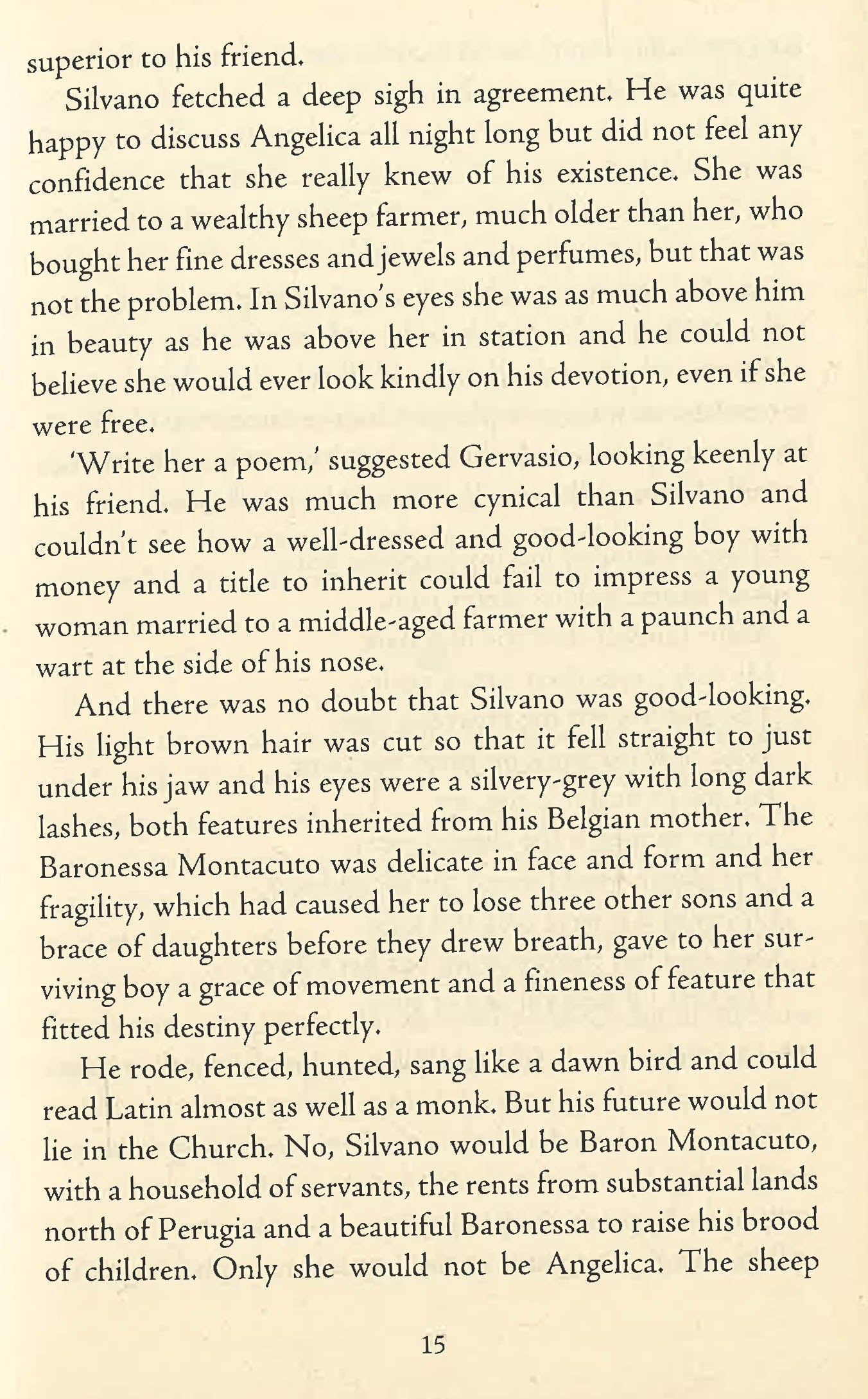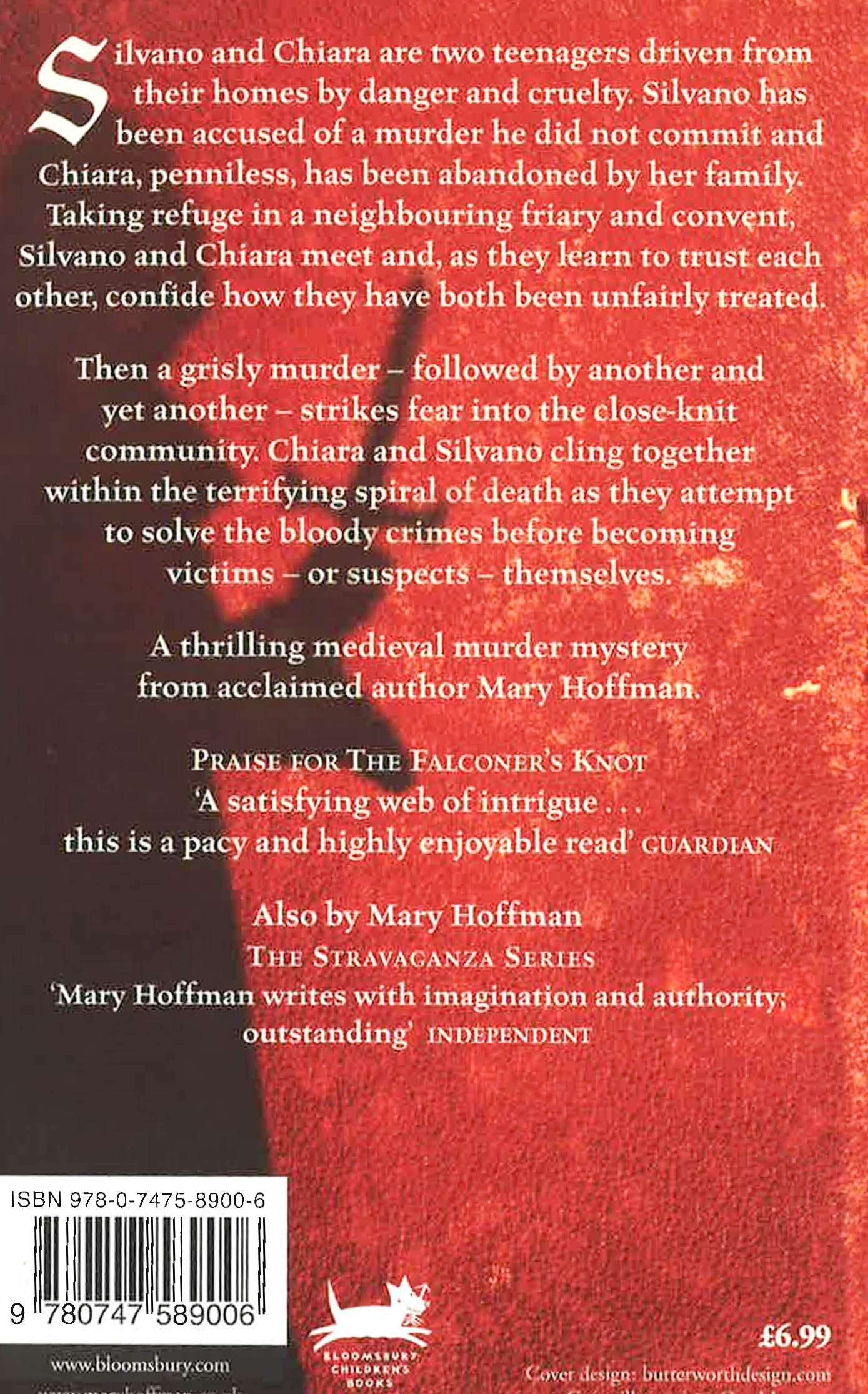 Silvano and Chiara are two teenagers with a difference. Silvano has been accused of a murder he did not commit. Chiara has been ousted from her family as a young woman with no marriage prospects. For these two very different reasons they are forced to seek refuge in a neighbouring convent and friary. And when they meet they are instantly aware that they are both outsiders, ill at ease with monastic life. Then a grisly murder - followed by another, and then another - strikes fear into the close-knit community. Chiara and Silvano cling together within the terrifying spiral of murder as they, and the friends they have made, attempt to solve the deadly mystery. This remarkably rich mystery thriller, with all the pace and action of a 'whodunnit', is set in the incredibly atmospheric environs of a friary in 14th-century Italy. Amidst all the action of the murder mystery, the author depicts in fascinating and intricate detail the lives and tasks of the friars and nuns, whether it be crushing pigments to create paints for the fresco artists in nearby Assisi, or the daily and nightly ritual of the religious services. All the historical detail is carefully researched.