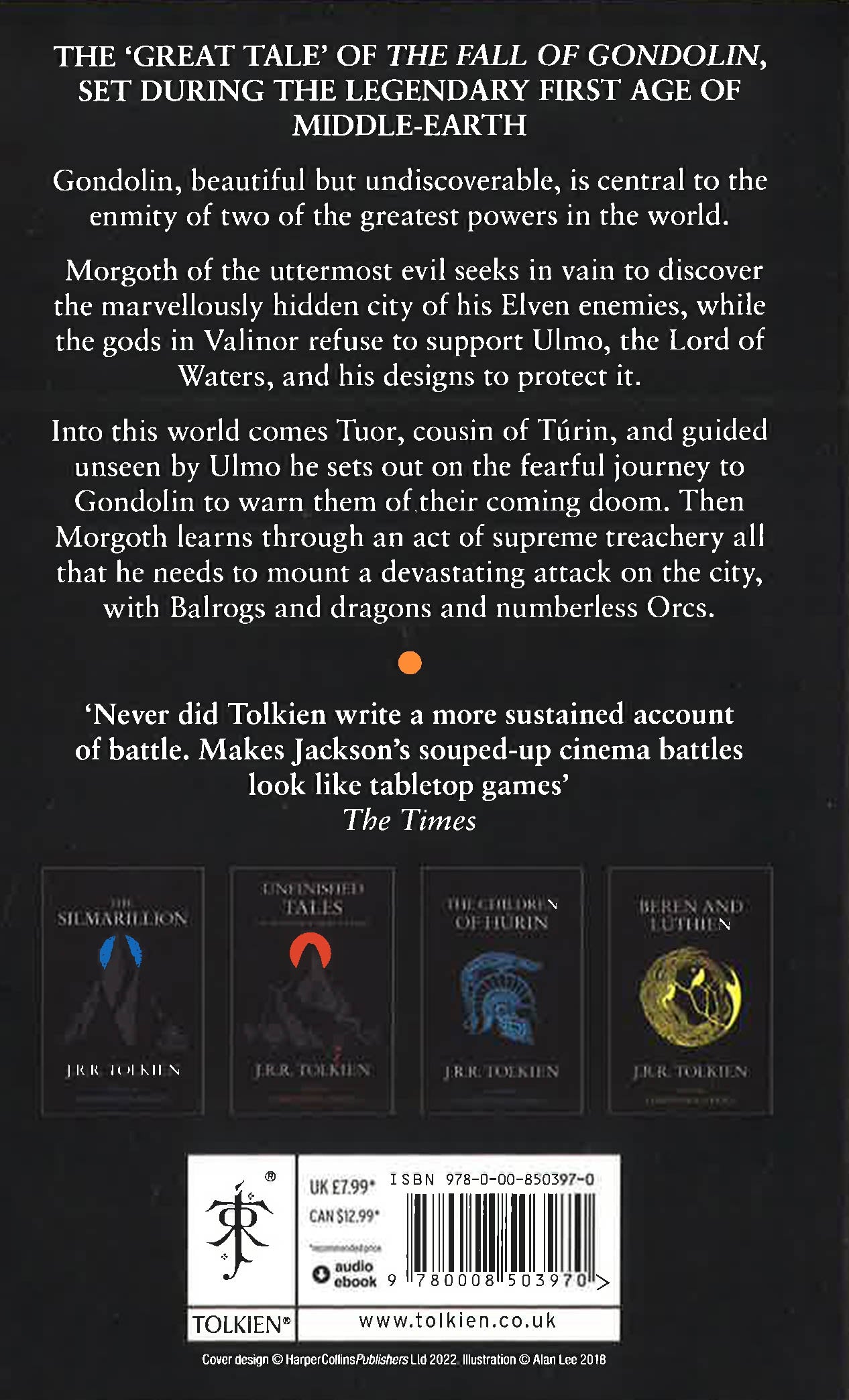 Central to this enmity of the gods is the city of Gondolin, beautiful but undiscoverable. It was built and peopled by Noldorin Elves who, when they dwelt in Valinor, the land of the gods, rebelled against their rule and fled to Middle-earth. Turgon King of Gondolin is hated and feared above all his enemies by Morgoth, who seeks in vain to discover the marvellously hidden city, while the gods in Valinor in heated debate largely refuse to intervene in support of Ulmo’s desires and designs.