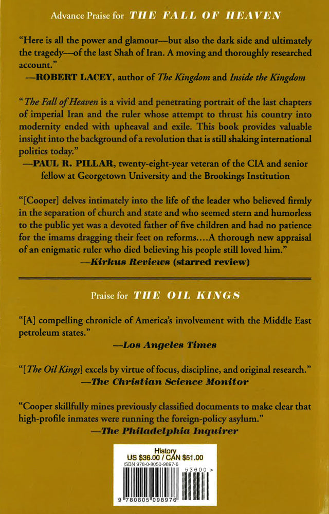 In this remarkably human portrait of one of the twentieth century's most complicated personalities, Mohammad Reza Pahlavi, Andrew Scott Cooper traces the Shah's life from childhood through his ascension to the throne in 1941. He draws the turbulence of the post-war era during which the Shah survived assassination attempts and coup plots to build a modern, pro-Western state and launch Iran onto the world stage as one of the world's top five powers. Readers get the story of the Shah's political career alongside the story of his courtship and marriage to Farah Diba, who became a power in her own right, the beloved family they created, and an exclusive look at life inside the palace during the lranian Revolution. Cooper's investigative account ultimately delivers the fall of the Pahlavi dynasty through the eyes of those who were there: leading lranian revolutionaries; President Jimmy Carter and White House officials; US Ambassador William Sullivan and his staff in the American embassy in Tehran; American families caught up in the drama; even Empress Farah herself, and the rest of the lranian imperial family.Intimate and sweeping at once, The Fall of Heaven recreates in stunning detail the dramatic and final days of one of the world's most legendary ruling families, the unseating of which helped set the stage for the current state of the Middle East.