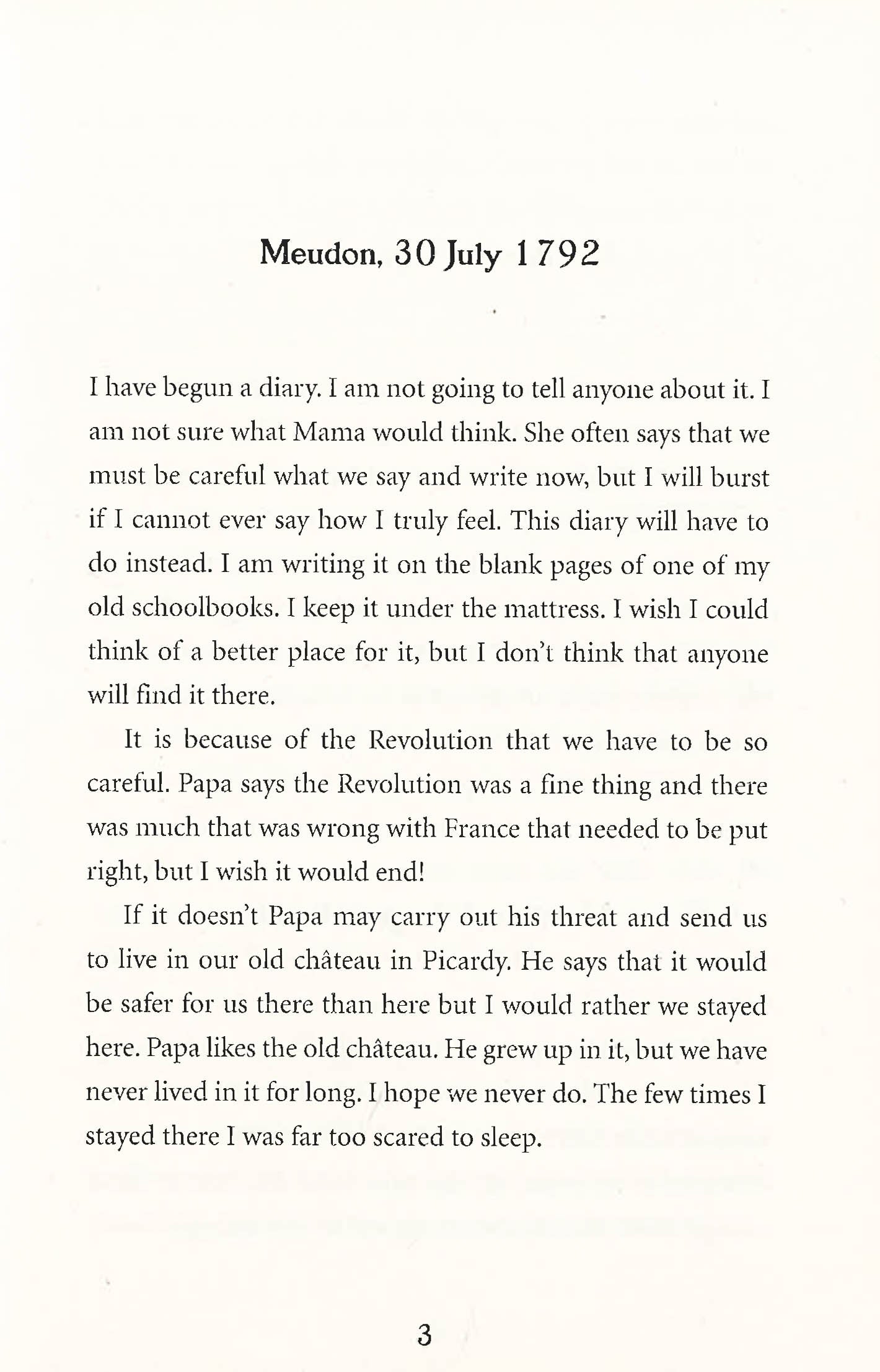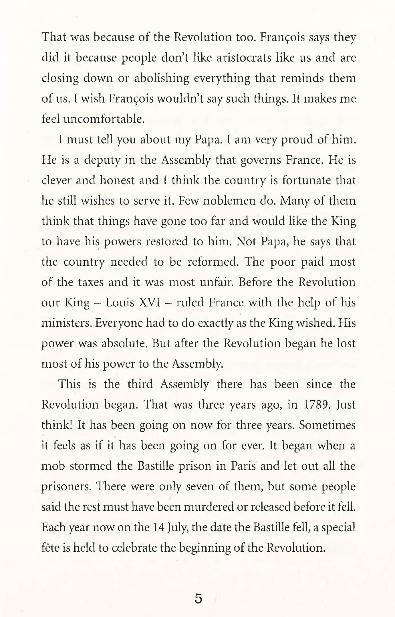 Liberty, equality, fraternity' cry the revolutionaries as they spill the blood of the aristocracy into the streets of Paris. The rumble of the tumbrils strikes fear into the hearts of the once rich and powerful. For one young noblewoman, a simple act of charity from years before could be the only thing that can save her. This gripping new addition to the "My Story" series is a fascinating glimpse into the Reign of Terror.