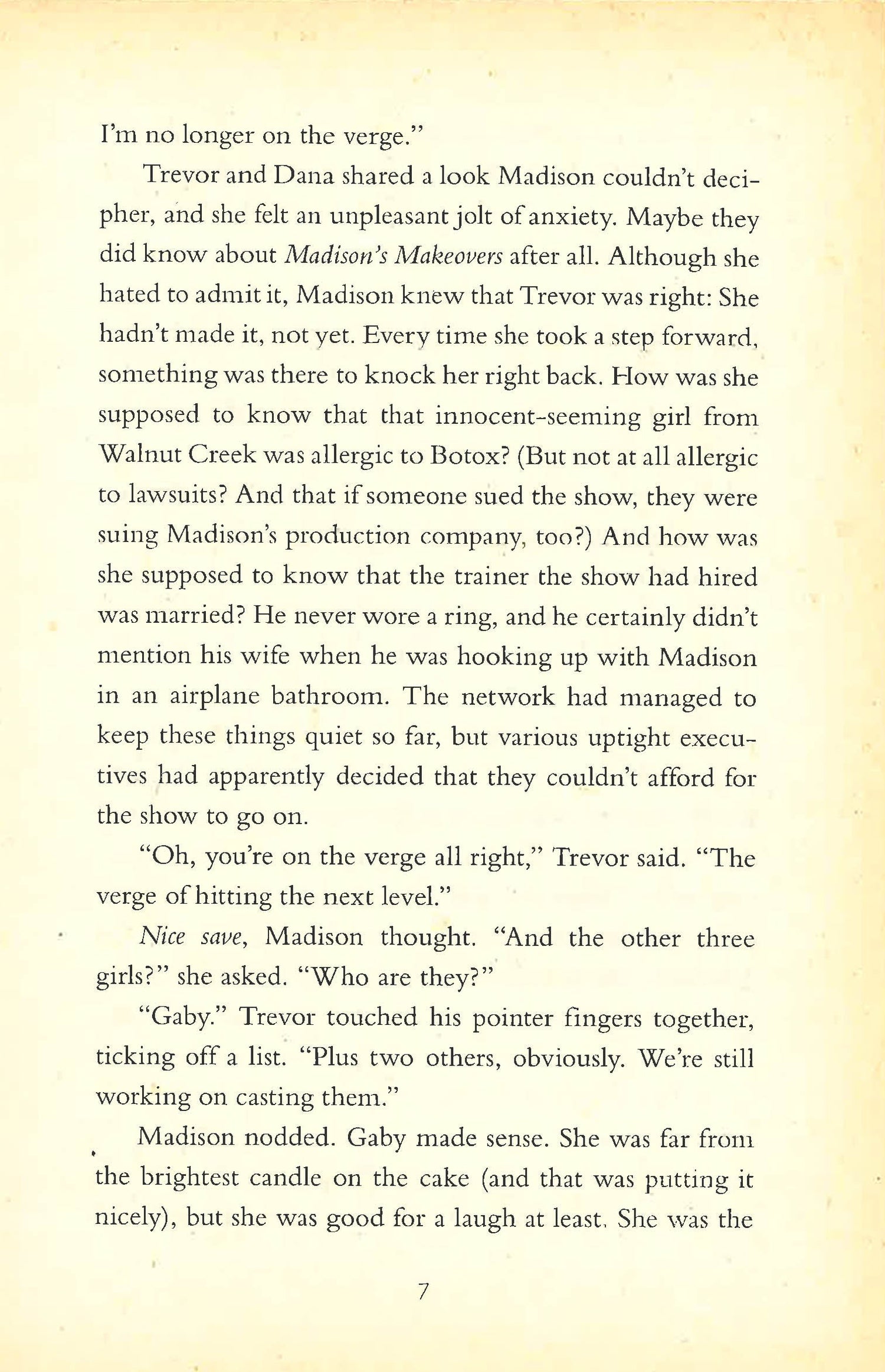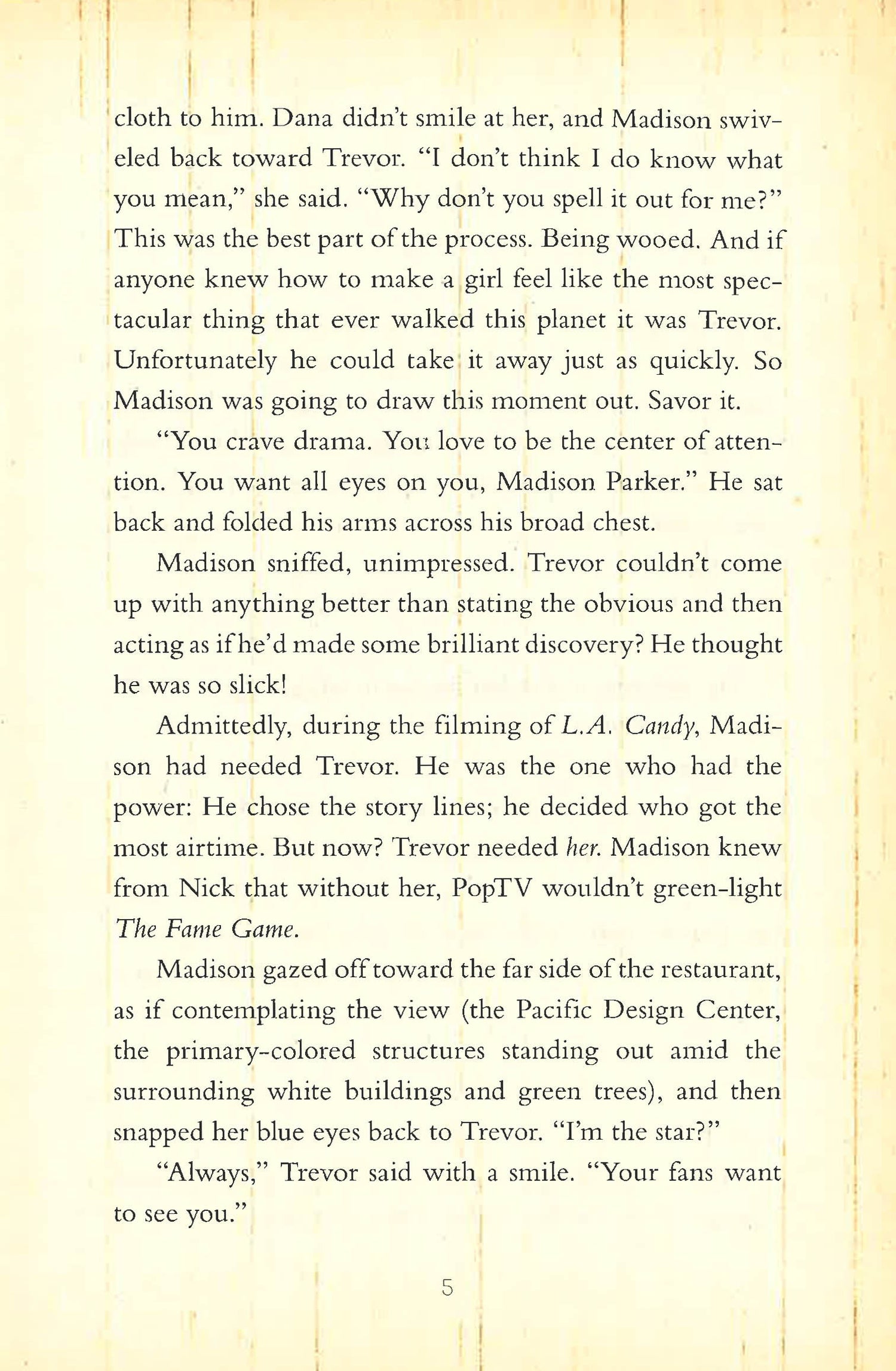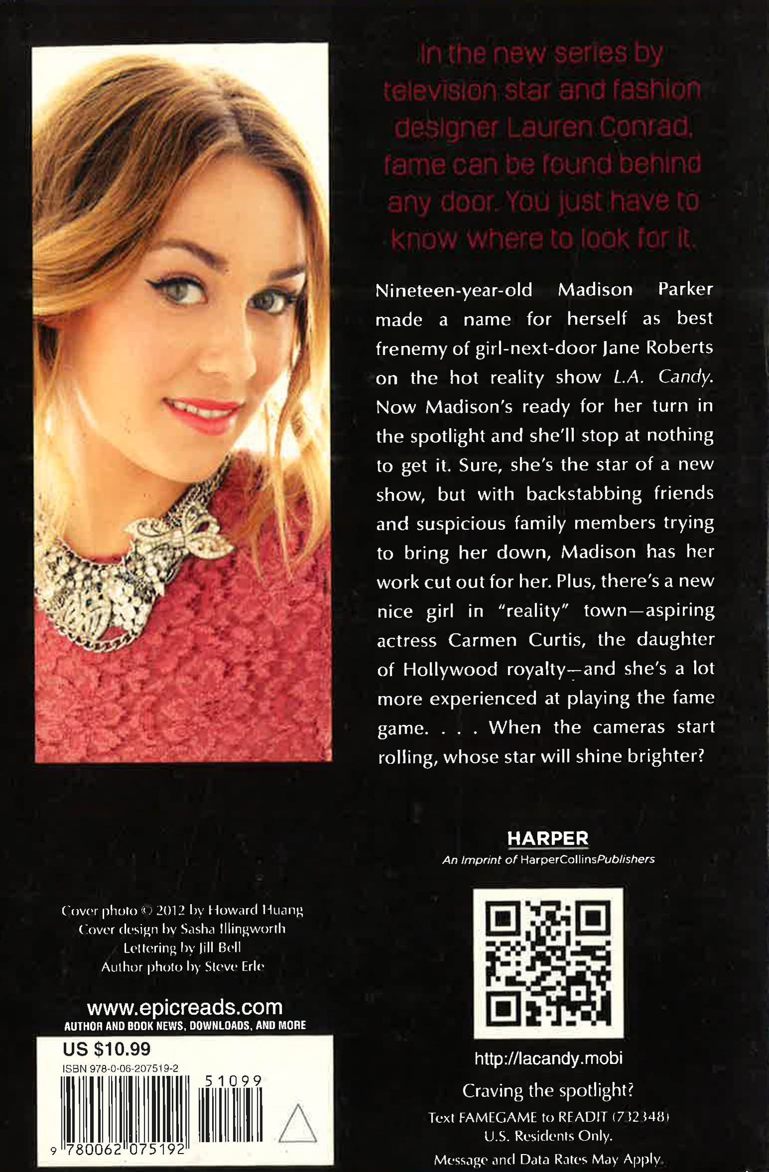 In the new series by television star and fashion designer Lauren Conrad, fame can be found behind any door. You just have to know where to look for it. Nineteen-year-old Madison Parker made a name for herself as best frenemy of girl-next-door Jane Roberts on the hot reality show L.A. Candy. Now Madison's ready for her turn in the spotlight and she'll stop at nothing to get it. Sure, she's the star of a new show, but with backstabbing friends and suspicious family members trying to bring her down, Madison has her work cut out for her. Plus, there's a new nice girl in "reality" town—aspiring actress Carmen Curtis, the daughter of Hollywood royalty—and she's a lot more experienced at playing the fame game. . . . When the cameras start rolling, whose star will shine brighter?