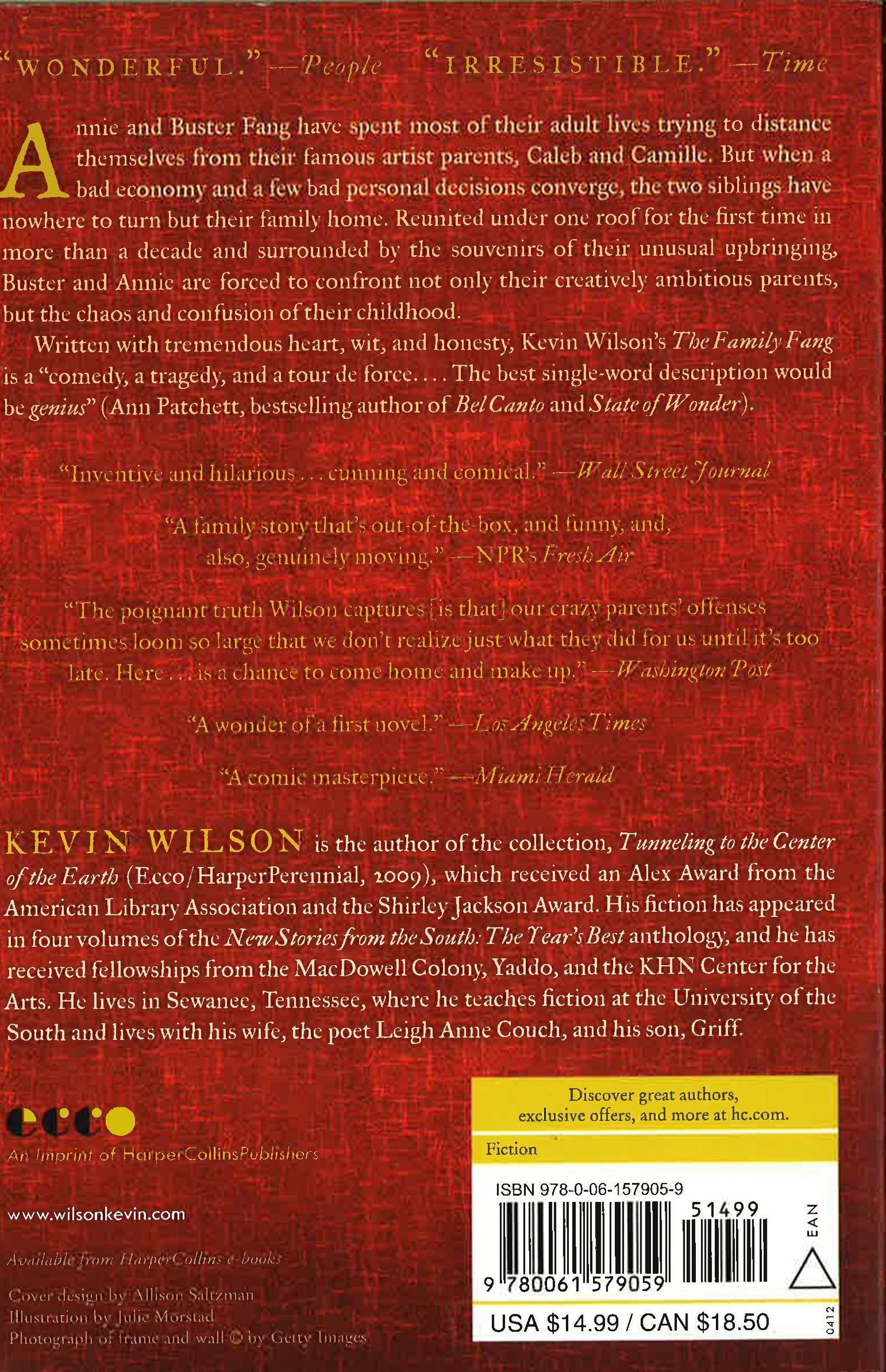 With this novel about an oddball family of performance artists, Wilson comes through in a big way, with a funny, poignant, laugh-and-cry-out-loud novel about the art of surviving a masterpiece of dysfunction.