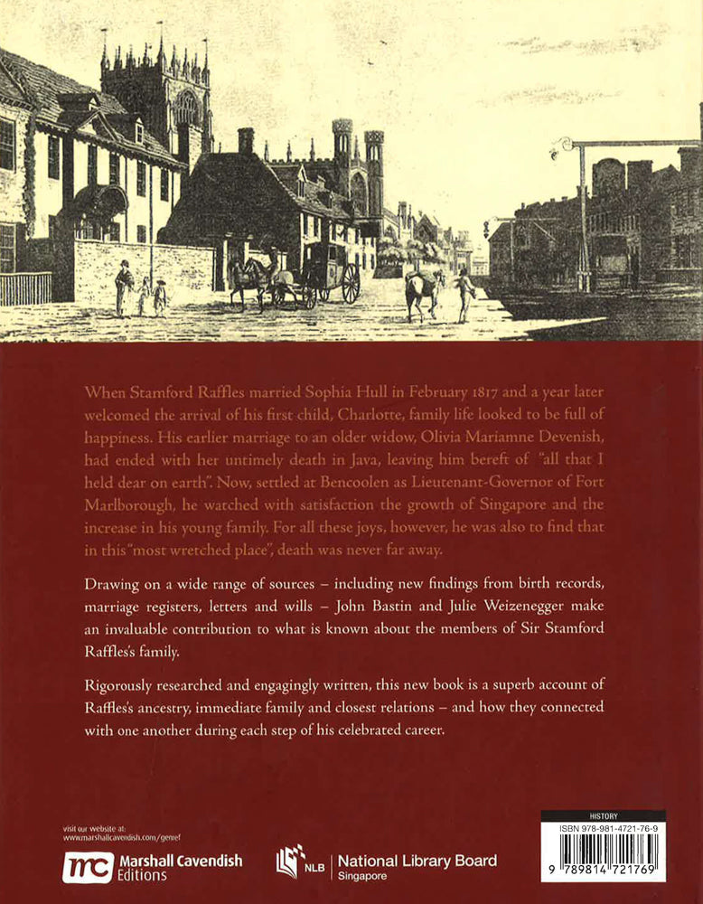 When Stamford Raffles married the "handsome, elegant" Sophia Hull in February 1817 and a year later welcomed the arrival of his first child, Charlotte, family life looked to be full of happiness. His earlier marriage, to Olivia Mariamne Devenish, a widow nearly ten years older than him, had ended with her untimely death in Java, leaving him bereft of "all that I held dear on earth". Now, settled in Bencoolen as Governor-General, he watched with satisfaction over the growth of Singapore and the increase of his young family. For all these joys, however, he was also to find that in this "most wretched place", death was never far away. Drawing on a wide range of sources - including new findings from birth records, marriage registers, letters and wills historian John Bastin makes an invaluable contribution to what is known about the members of Sir Stamford Raffles's family. Rigorously researched and engagingly written, this new book is a superb account of Raffles's ancestry, immediate family and closest relations - and how they intertwined with each step of his celebrated career.