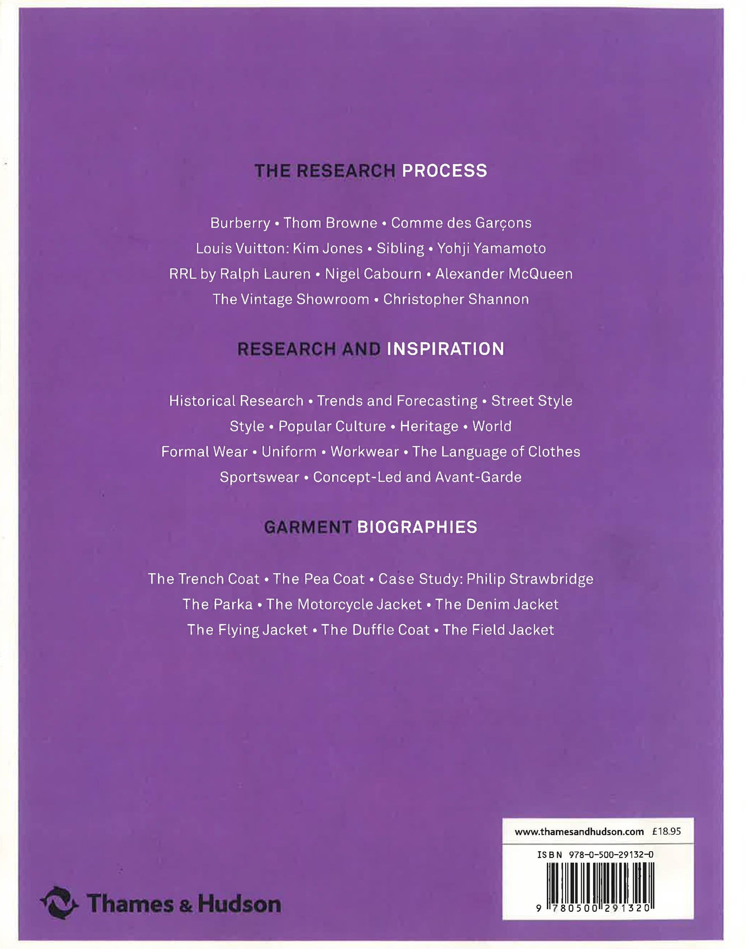 This companion to the successful The Fashion Resource Book shows student and professional designers how to use visual research to develop a personal aesthetic as a fashion designer in a global industry. The book is divided into three sections: the first presents the research process underpinning the work of 10 designers including Kim Jones for Louis Vuitton, Yohji Yamamoto and Alexander McQueen; the second section is on research and inspiration. The subjects covered include street style and uniform, and the influence of established companies such as Barbour and Gieves & Hawkes. The concept-led work of such contemporary designers as Christopher Shannon and Walter Van Beirendonck is also explored. The third part presents detailed case studies of particular garments, trench coats, parkas and denim jackets among them. Illustrations provide an informative accompaniment to the text throughout.