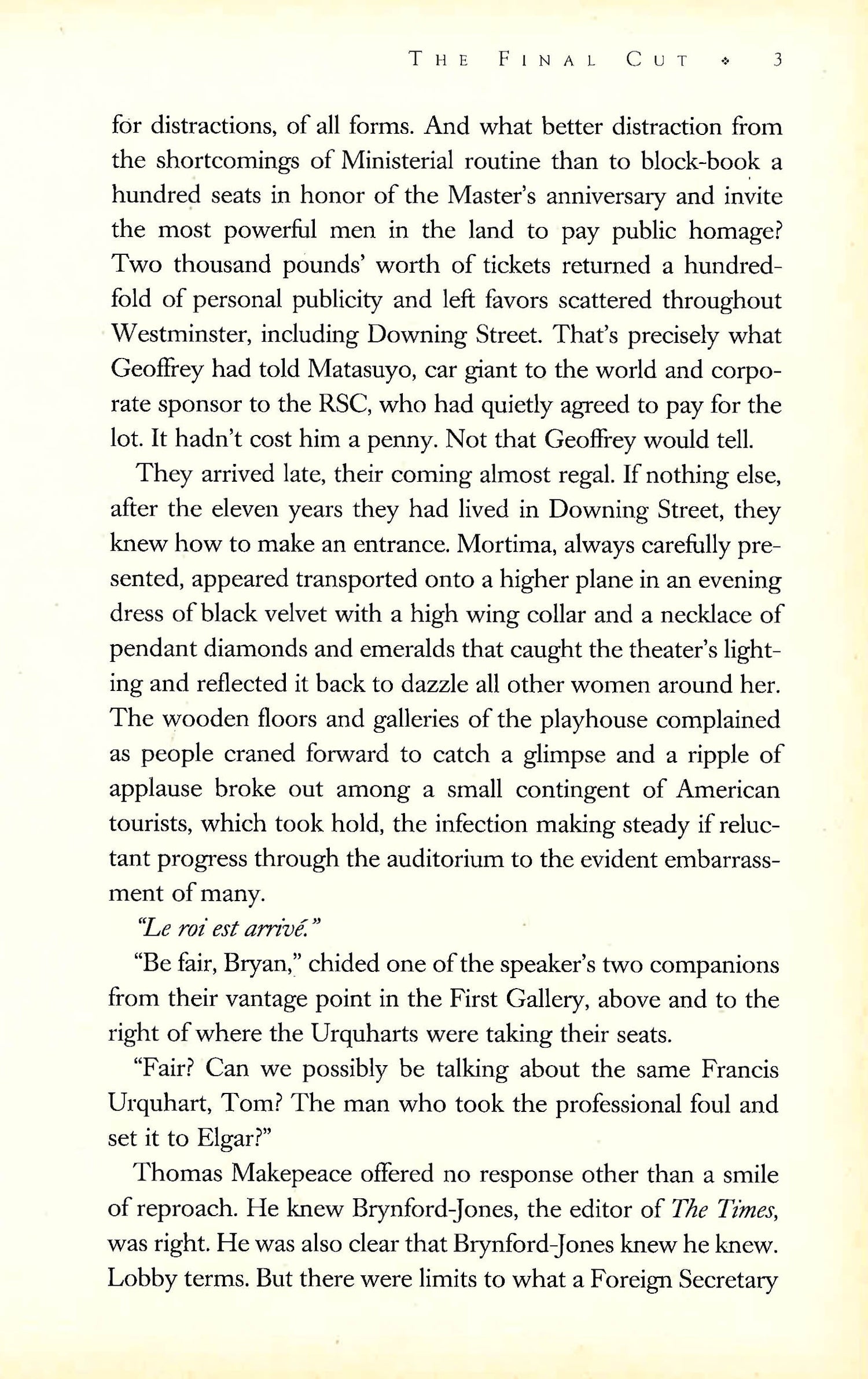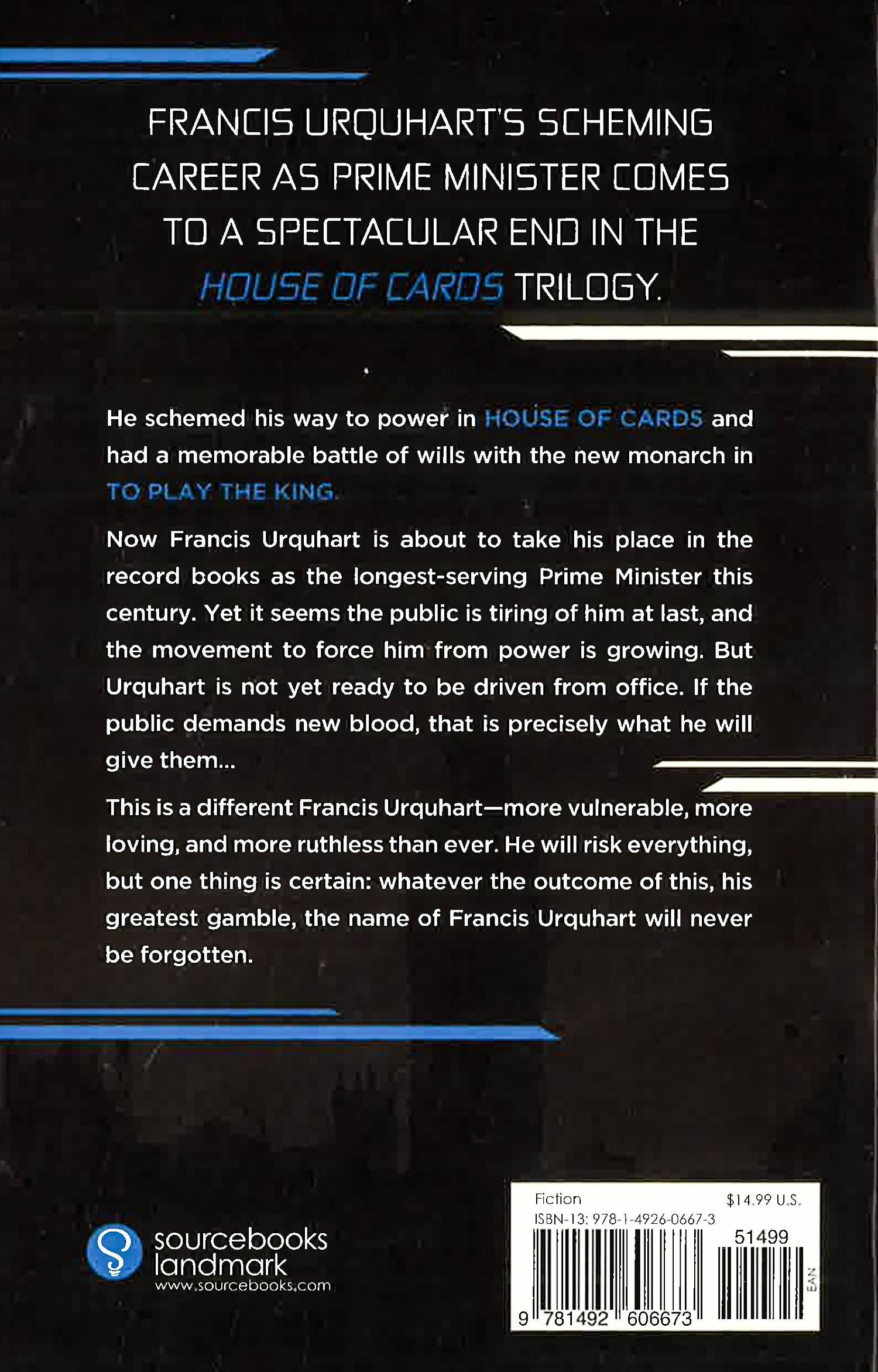 The final book in the Internationally Bestselling trilogy that inspired the hit Netflix series House of Cards. Months from taking his place as the longest-serving Prime Minister this century, Francis Urquhart's country is tiring of him. But he's not about to be driven from office. If the public demands new blood, that is precisely what he will give them... This is a different Francis Urquhart - more vulnerable, more loving, and more ruthless than ever. He will risk everything, but one thing is certain: whatever the outcome of this, his greatest gamble, the name of Francis Urquhart will never be forgotten. Finishing the dark tale of greed, corruption, and unquenchable ambition, The Final Cut reveals that no matter the country, politics, intrigue and passion reign in the corridors of power. An explosive political thriller, fans of Vince Flynn, David Baldacci and Robert Ludlum will enjoy this stunning conclusion to Dobb's trilogy. As a former advisor to Margaret Thatcher, Conservative Party Chief of Staff, and now peer of the realm and Conservative member of the House of Lords, Baron Michael Dobbs provides an insider look at the twists and turns of British politics. Other books in the House of Cards series: House of Cards, Book 1 - The dark, twisting schemes of a politician determined to succeed To Play The King, Book 2 - Newly elected Prime Minister plots to take on the Monarchy to grab even more power The Final Cut, Book 3 - The perfect finale to this twisted trilogy, Urquhart refuses to close his career quietly What readers are saying about House of Cards: If you enjoy political intrigue, murder, and a truly loathsome character you will greatly enjoy this final installment by Dobbs. Great book highly recommend if you are currently viewing House of Cards. Francis Urquhart is on a par with RIchard III as a baddie of literature. And yet Dobbs has us cheering from him at every turn. Dobbs ties off the House of Cards series with a bang and pens, perhaps, his best novel of the trilogy. Francis Urquhart at his finest, the ultimate chess game against the world. the sharpest, smartest, and most intelligent writing I have read. A superb ending to the series! What reviewers are saying about House of Cards: A triumphant return...the best book of the three. The action is unflagging, the characterization razor-sharp, the satirical barbs at politics and politicians unfailingly accurate. What a brilliant creation F.U. is." -Sunday Telegraph Razor-sharp and merciless...One thing is certain: F.U. will be remembered for much longer than many a real Prime Minister." - Daily Mail Thoroughly entertaining. Urquhart is a joy, and the wonderful games he plays have lost none of their attraction." - The Times What everyone is saying about the House of Cards books: This blood and thunder tale, lifelike and thoroughly cynical, certainly carries the ring of authenticity....a great triumph." - The Independent ..".a political thriller writer with a marvellous inside track knowledge of government." - Daily Express If you are a fan of the modern TV series than you should definitely pick up these books. Michael Dobbs has an uncanny knack of forecasting the future. A fascinating read and a conclusion that would send a chill through Buckingham Palace." - Sunday Express