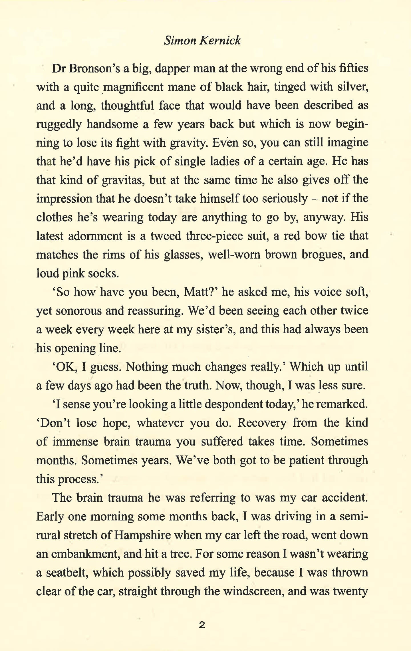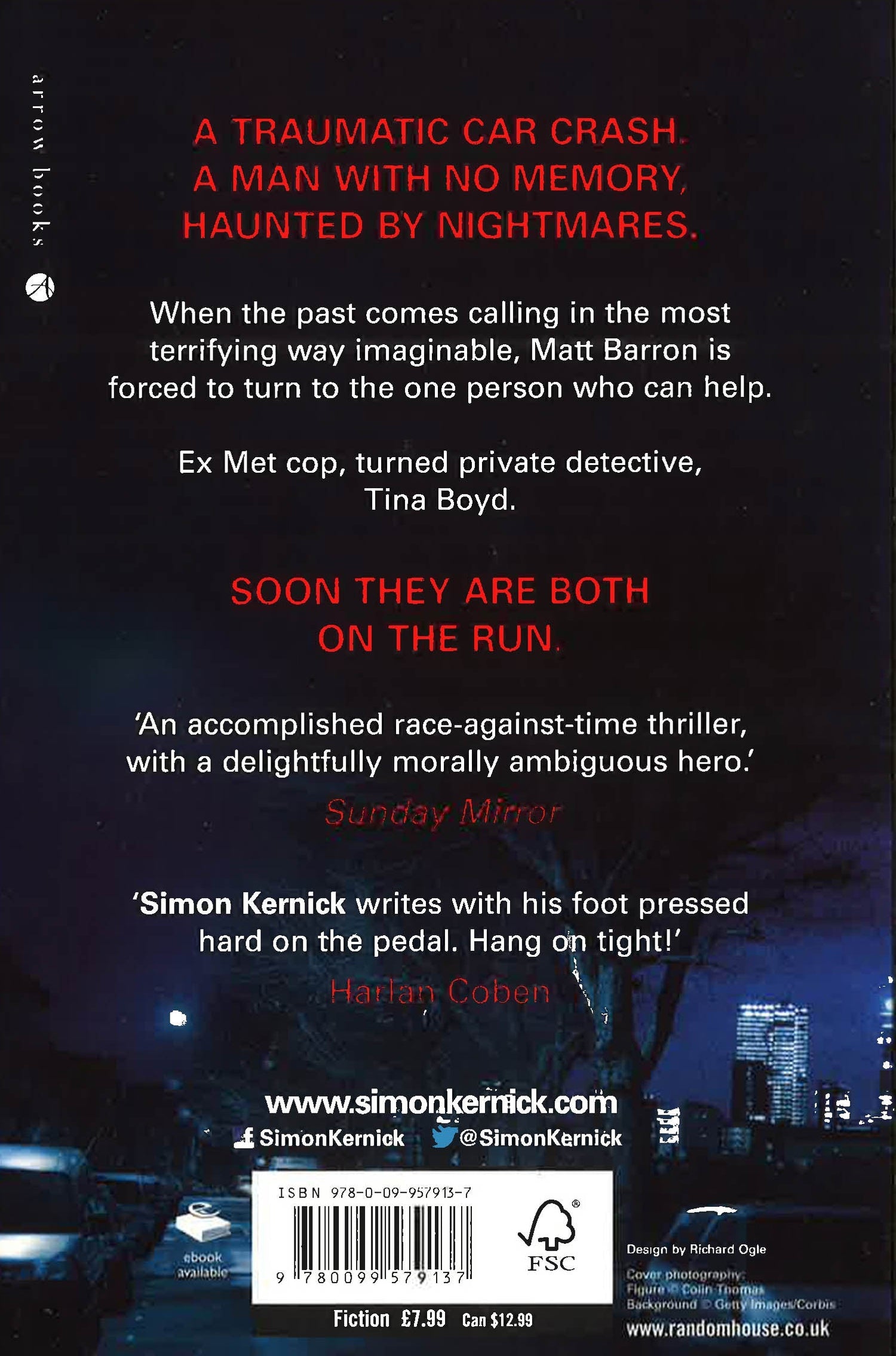 Featuring Simon Kernick's maverick detective, TINA BOYD, this is the gripping new race-against-time thriller by the best-selling author of Relentless, The Last 10 Seconds and Stay Alive.'It's night, and I'm in a strange house. The lights are on, and and I'm standing outside a half-open door. Feeling a terrible sense of forboding, I walk slowly inside. And then I see her. A woman lying sprawled across a huge double bed. She's dead. There's blood everywhere. And the most terrifying thing of all is that I think her killer might be me ...' A traumatic car-crash. A man with no memory, haunted by nightmares. When the past comes calling in the most terrifying way imaginable, Matt Barron is forced to turn to the one person who can help. Ex Met cop, turned private detective, Tina Boyd. Soon they are both on the run .....