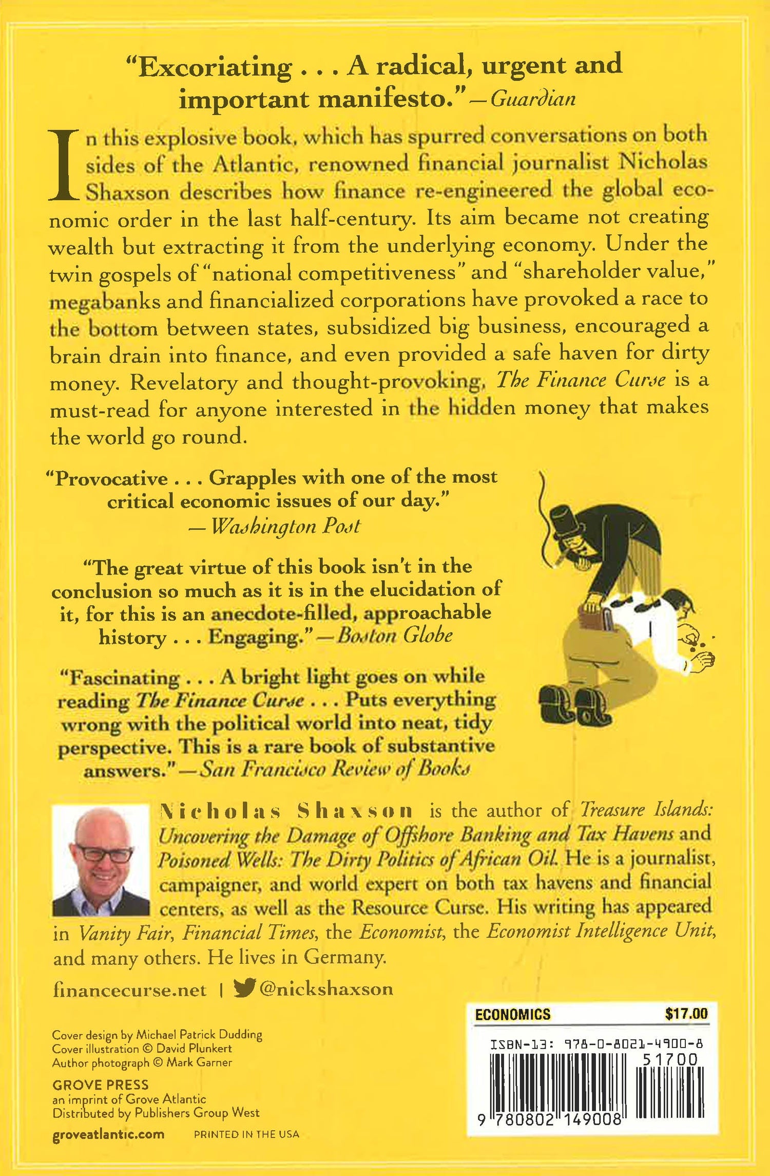 Financial journalist Nicholas Shaxson first made his reputation studying the “resource curse,” seeing first-hand the disastrous economic and societal effects of the discovery of oil in Angola. He then gained prominence as an expert on tax havens, revealing the dark corners of that world long before the scandals of the Panama and Paradise Papers. Now, in The Finance Curse, revised with chapters exclusive to this American edition, he takes us on a terrifying journey through the world economy, exposing tax havens, monopolists, megabanks, private equity firms, Eurobond traders, lobbyists, and a menagerie of scoundrels quietly financializing our entire society, hurting both business and individuals.