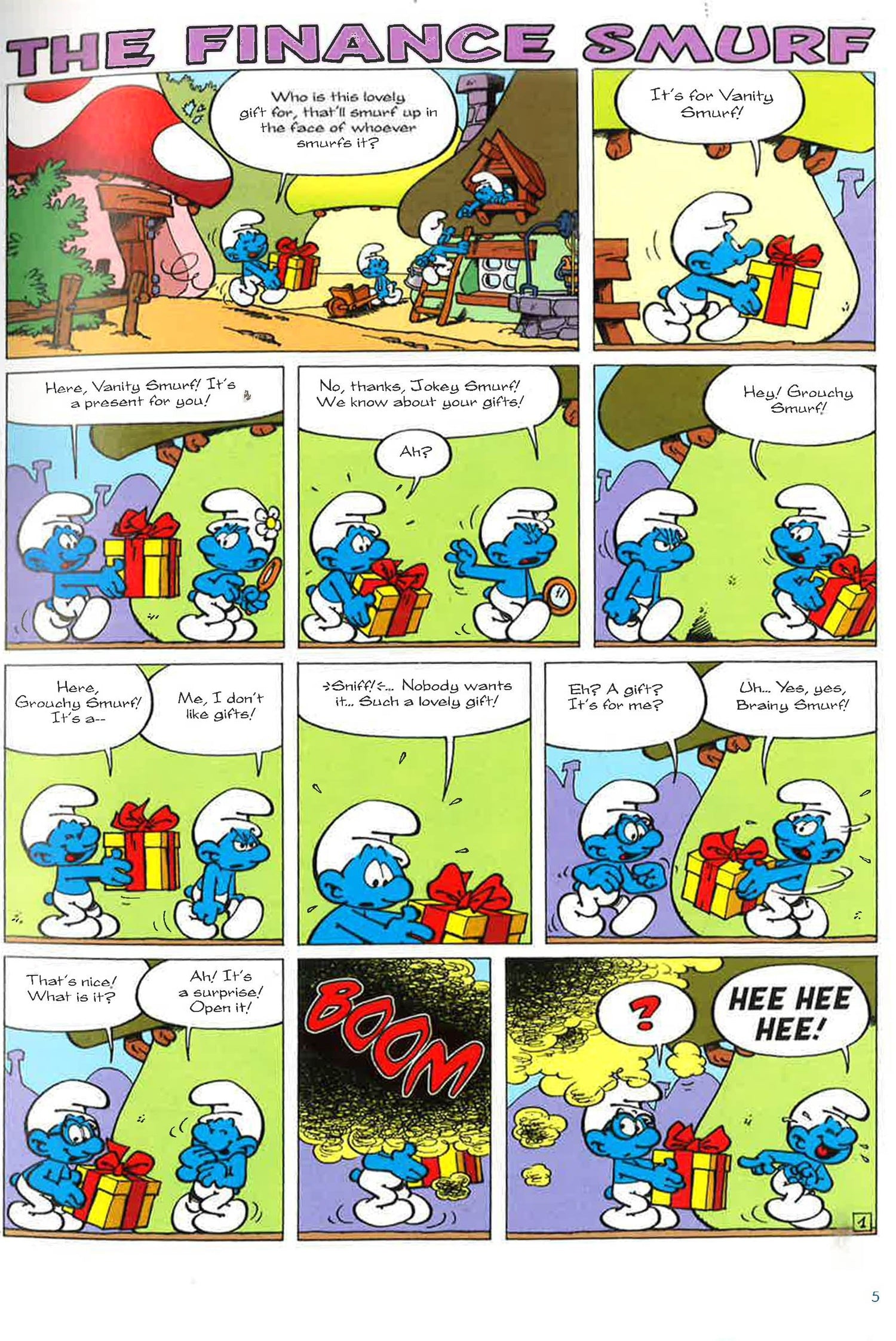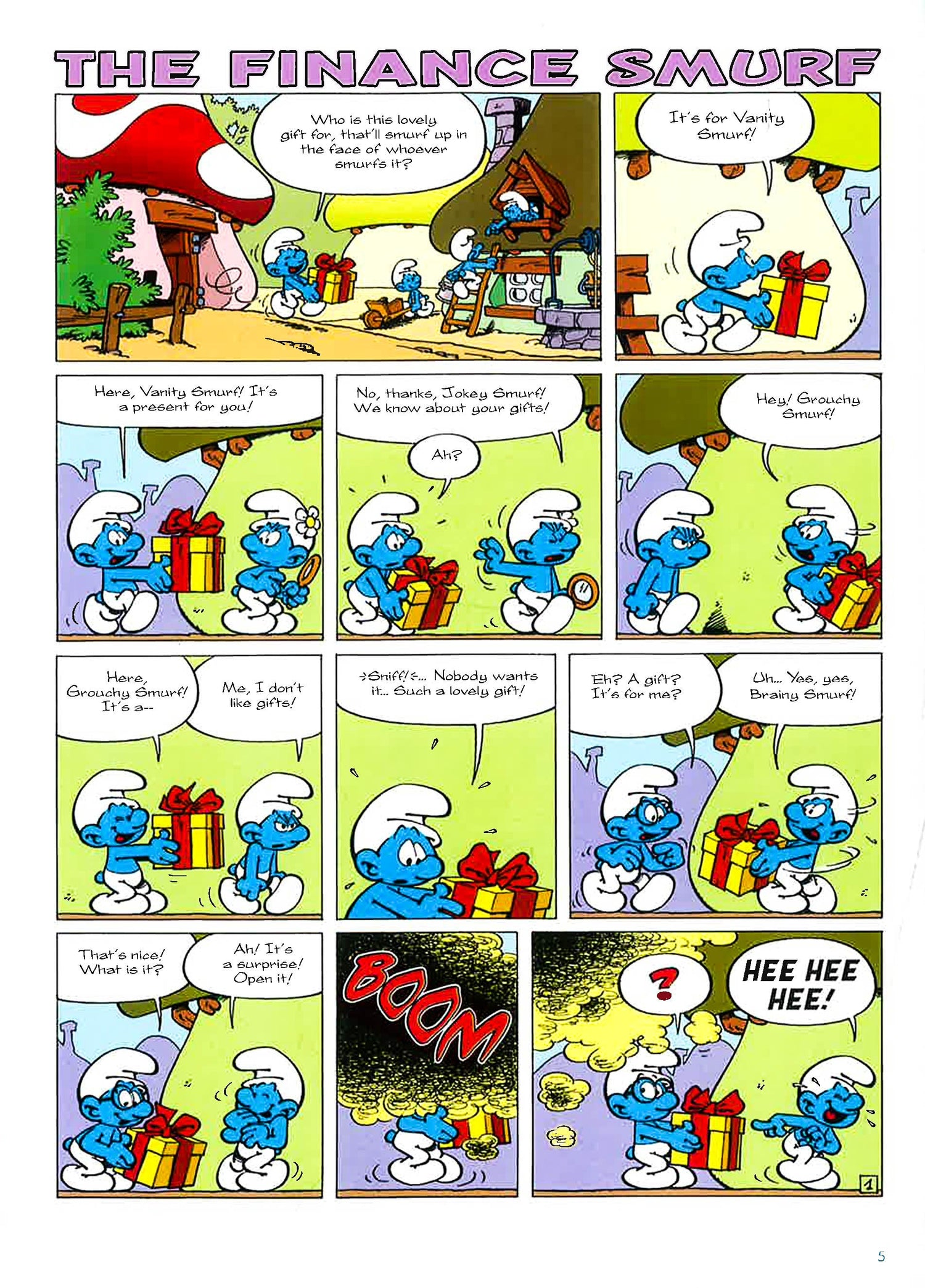 When Papa Smurf is hurt in a lab accident he sends a smurf to the good wizard Homnibus for help. Although Homnibus has a cure, he needs to buy some seeds he's missing for the recipe. Fascinated by this exchange of commerce among the humans, the smurf returns to Smurf Village as Finance Smurf! After teaching his fellow smurfs how to buy things with money, some smurfs get rich while others don't, and things quickly tumble into disarray. Will the smurfs find a way back to the peaceful way things used to be?