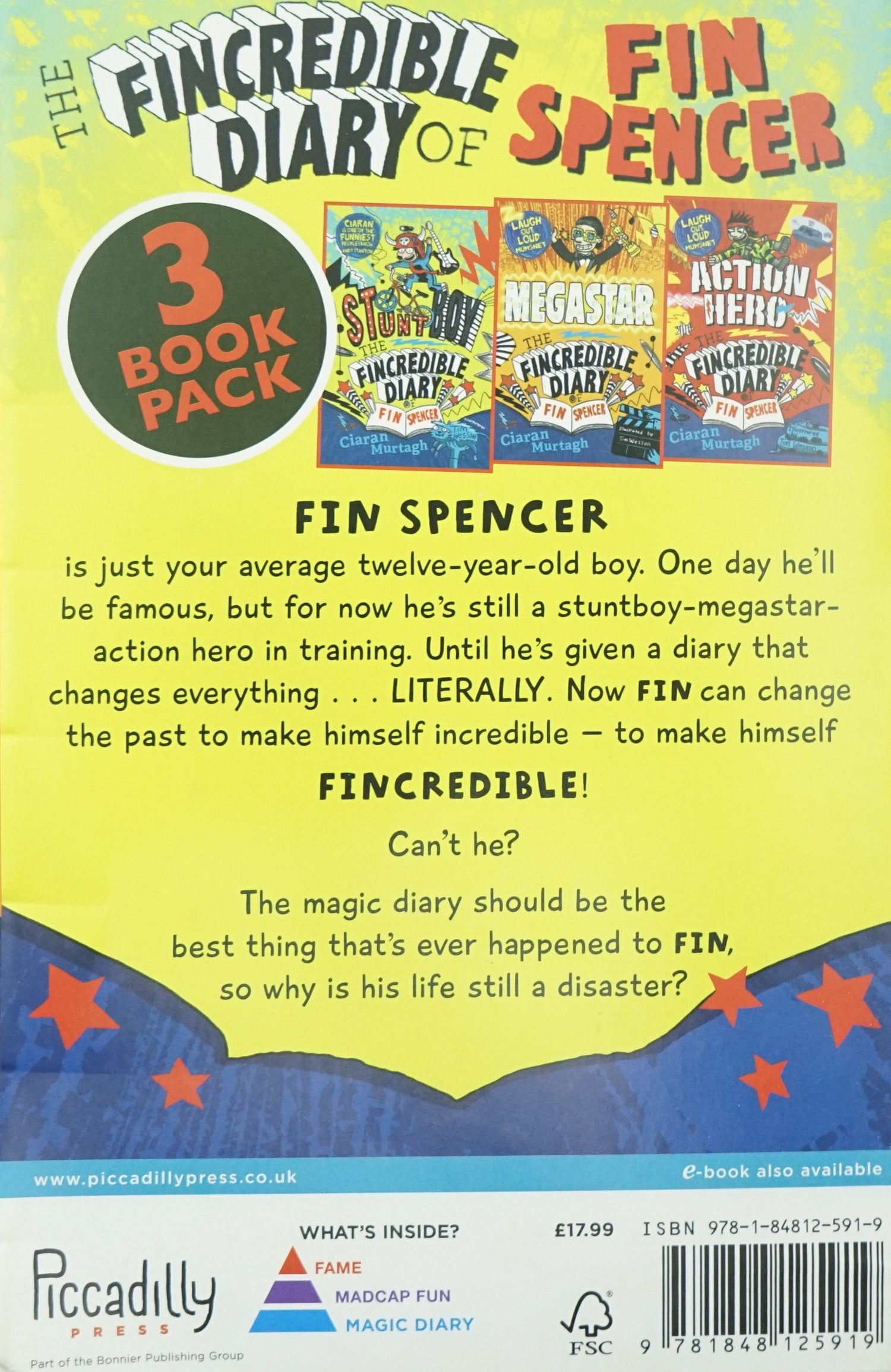 The Fincredible Diary of Fin Spencer includes 3 titles, Action Hero, Stunt Boy, and Megastar.