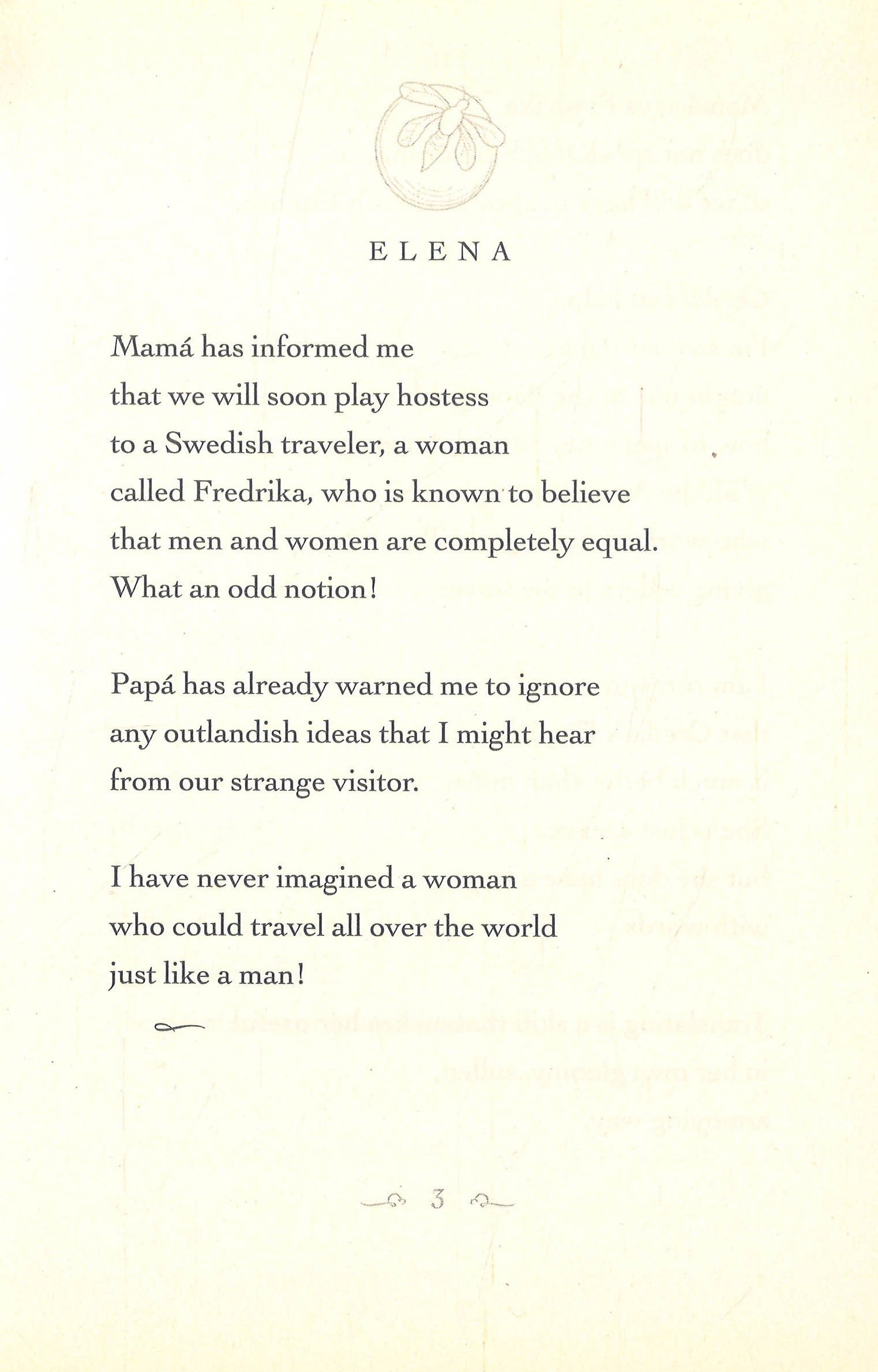 In this quietly powerful new book, which is young adult historical fiction based on a true story, award-winning poet Margarita Engle paints a portrait of early women's rights pioneer Fredrika Bremer and the journey to Cuba that transformed her life.