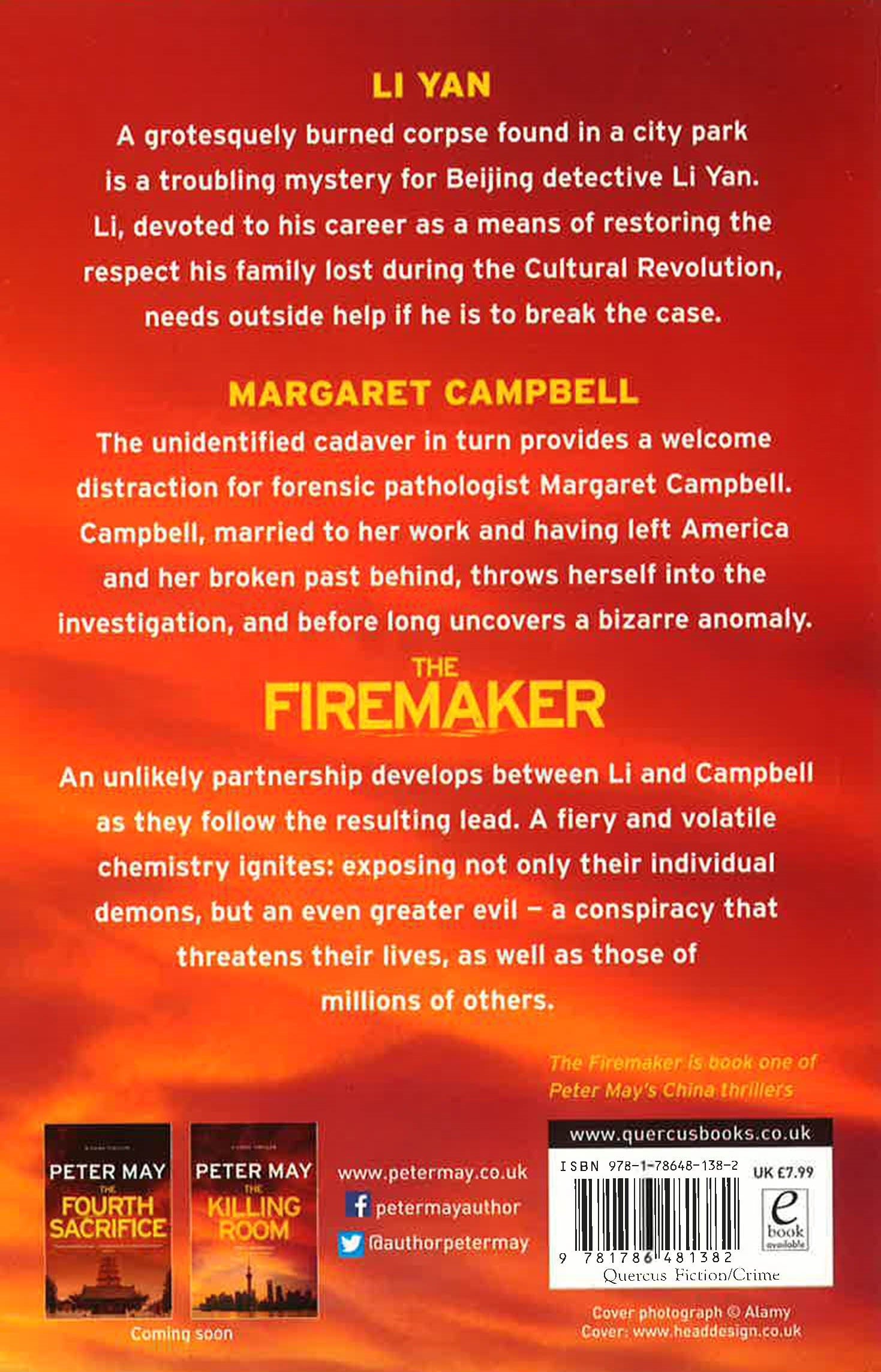 Li Yan A grotesquely burned corpse found in a city park is a troubling mystery for Beijing detective Li Yan. Li, devoted to his career as a means of restoring the respect his family lost during the Cultural Revolution, needs outside help if he is to break the case. Margaret Campbell The unidentified cadaver in turn provides a welcome distraction for forensic pathologist Margaret Campbell. Campbell, married to her work and having left America and her broken past behind, throws herself in to the investigation, and before long, uncovers a bizarre anomaly. An unlikely partnership develops between Li and Campbell as they follow the resulting lead. A fiery and volatile chemistry ignites: exposing not only their individual demons, but an even greater evil - a conspiracy that threatens their lives, as well as those of millions of others.